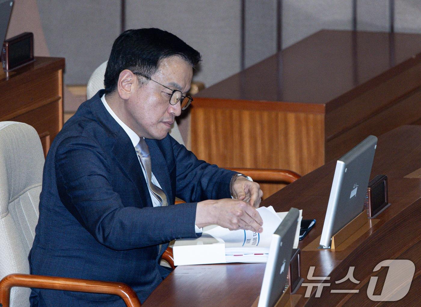 마은혁 권한쟁의에는 "결정 존중하겠지만 결정 안나와 예단 어려워"최상목 대통령 권한대행 부총리 겸 기획재정부 장관이 13일 오후 서울 여의도 국회 본회의장에서 열린 제422회 국회(임시회) 제5차 본회의에 참석해 자료를 살펴보고 있다. 2025.2.13/뉴스1 ⓒ News1 이재명 기자관련 키워드최상목추경마은혁국정협의회박지원민주당더불어민주당전민 기자 與, 이혜훈 '단독 청문회' 갈까…정태호 "野 임이자 위원장과 일단 협의"올해 공공기관 투자 70조 역대 최대…상반기 37조 집행관련 기사국회, 대정부 질문 이틀차…최상목 두고 강대강 대치 예상[단독]민주, 尹정부 거부 내란특검 등 8법 재의결…입법 드라이브"李 6·3·3 원칙 지켜야"vs"런덕수·런상목인가"…여야 공방(종합)한덕수·최상목 벼렀던 민주…'美관세' 명분 불출석에 부글與 "4일연속 본회의, 쌍탄핵 포석" 野 "산불 추경"…협의 난항