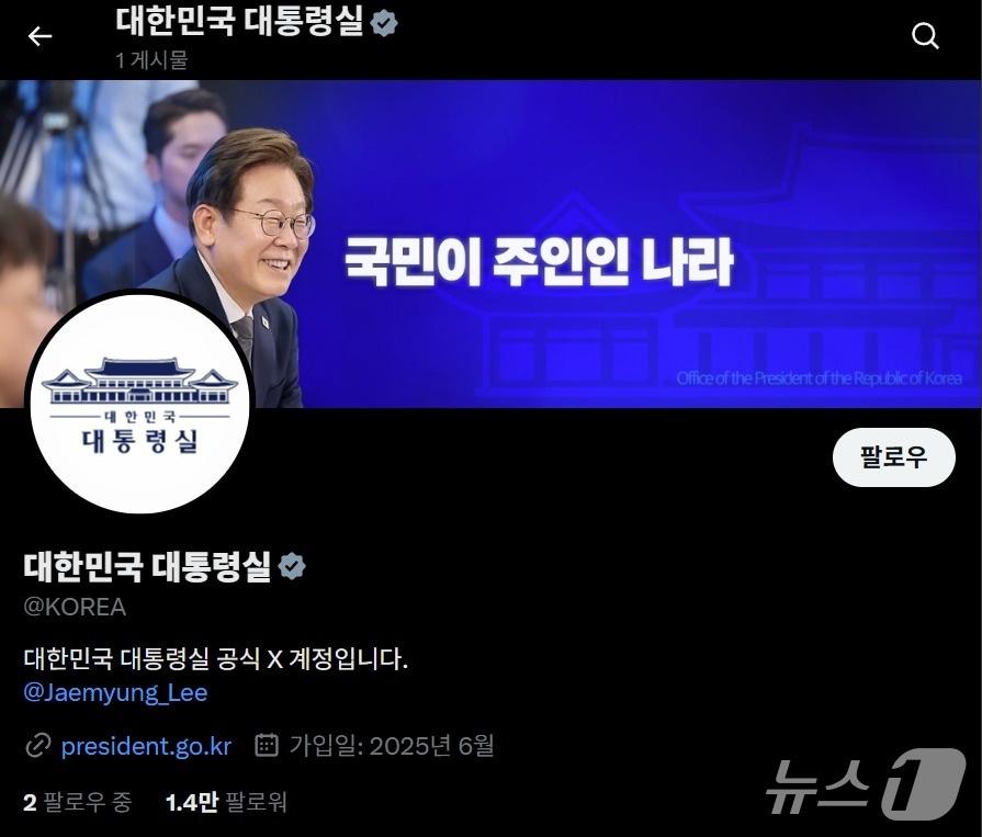 "국민 여러분과의 소통 강화 위해 마련한 소통창구"90만 팔로워 보유한 이 대통령 공식 X에서도 소개대통령실의 공식 X(구 트위터) 계정. (X 화면 갈무리)관련 키워드이재명시대이재명 대통령이재명정부이재명 정부이 대통령대통령실대통령실 트위터이재명 대통령김지현 기자 金총리, 연말 양천경찰서 방문…"보이스피싱 대응 모범, 국민 대신 감사"靑, 조경태 해수부 장관설 일축 "인사는 대통령 고유 권한"관련 기사'쓴소리' 진성준, 원내대표 첫 출사표…"치열한 토론 당정청 일체화""2026년은 '혁신 골든타임'…벤처투자 혹한기도 점차 해소"2026년 남북관계 전망 [정창현의 북한읽기][인터뷰 전문] 정은혜 "이혜훈 배신자라는 국힘, 극우 선언한 것"청와대 앞 돌아온 집회…"벌써 스트레스" "정치1번지 시위 당연" 분분