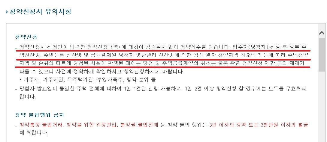 청약자에 검증책임 떠넘기는 시스템 문제…"사전검증 강화해야"인기단지 부적격자 속출, 잔여분 분양 과열로 이어지기도금융결제원 청약시스템 아파트투유 청약신청 유의사항에는 청약자에게 검증을 전적으로 전가하는 듯한 내용(빨간색 밑줄)이 명시돼 있다./사진=아파트투유 캡처화면ⓒ News1지난 10일 서울 종로구 운니동 '래미안 DMC 루센티아미계약 잔여물량 분양에 몰린 청약자들의 모습ⓒ News1