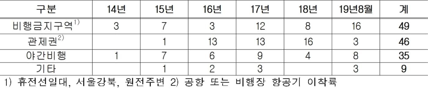 드론 항공법령 위반현황(국토교통부 제공). ⓒ 뉴스1