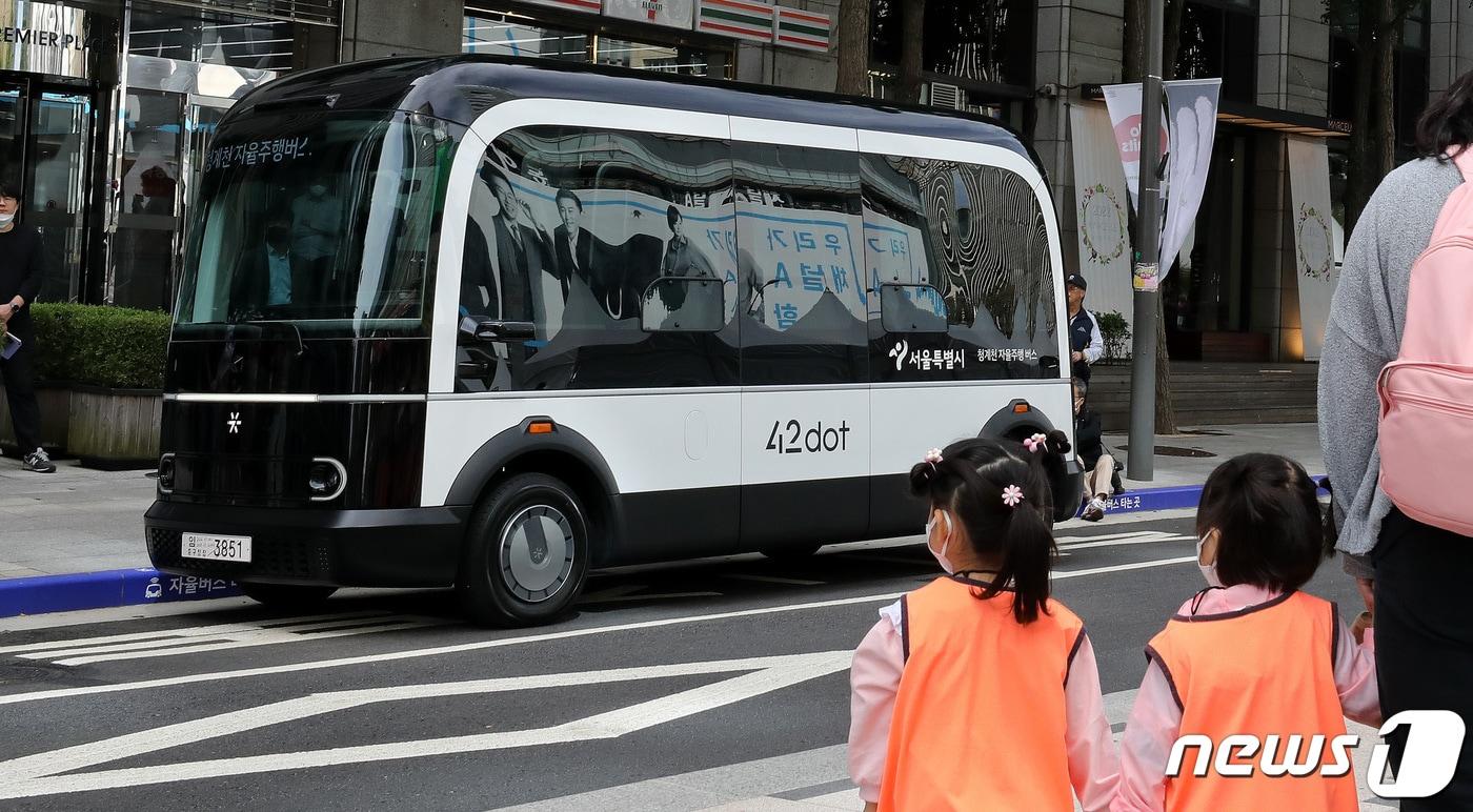 서울 청계천에서 전기 자율주행 전용버스(셔틀버스) 모습. 2022.9.26/뉴스1 ⓒ News1 박지혜 기자