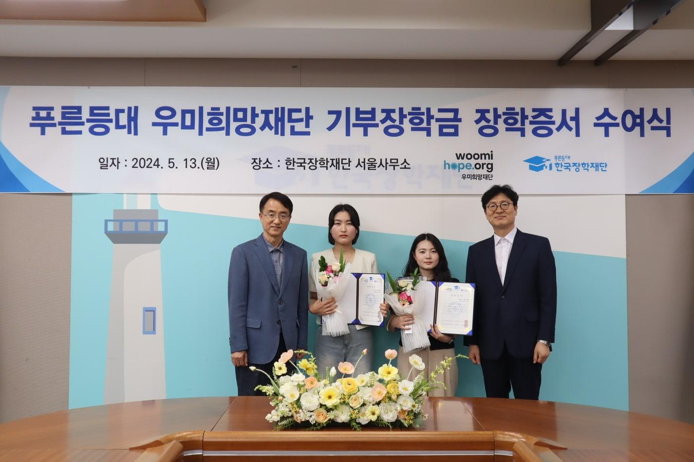 푸른등대 우미희망재단 기부장학금 장학증서 수여식에서 기념촬영을 하고 있다. 왼쪽부터 배성근 한국장학재단 장학이사, 대표 장학생 2인, 이춘석 우미희망재단 사무국장./우미건설 제공관련 키워드부동산우미희망재단푸른등대기부장학금장학증서황보준엽 기자 대출 규제 여파 서민 직격…디딤돌·버팀목대출 집행 18조 감소주택 공급 막던 행정병목 푼다…통합심의 확대·노후도시 정비계획 통합