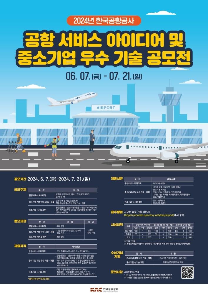 공항운영·시설분야 중소기업 성장 지원한국공항공사 '공항서비스 아이디어 및 중소기업 우수기술 공모전' 포스터. (한국공항공사 제공)관련 키워드한국공항공사공항서비스아이디어중소기업우수기술공모전김동규 기자 김윤덕 국토 장관, 산하기관 책임 전가 금지·갑질 엄정 대응 지시"납품지연 다원시스 왜 또 계약했나"…김윤덕, 코레일 의사결정 질타