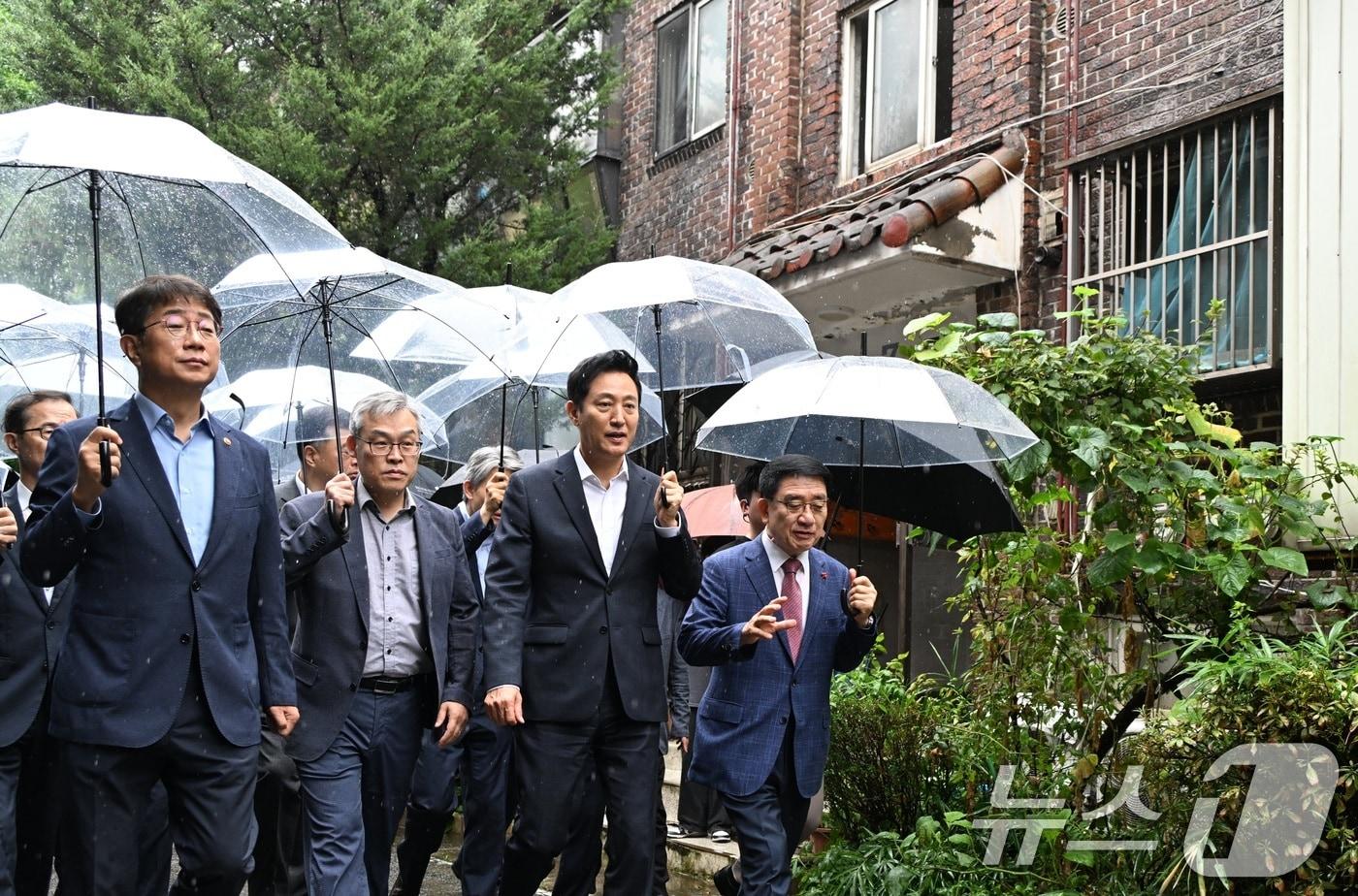 사업성 보정계수 적용, 허용용적률 인센티브 대폭 늘어분양 세대수 늘어 조합원 부담 감소…사업 속도 기대오세훈 서울시장이 박상우 국토교통부 장관 등과 12일 서울 구로구 온수동 주택 재건축 사업지를 둘러보고 있다. (서울시 제공) 2024.9.12/뉴스1관련 키워드부동산서울시오세훈금천노원구로사업성보정계수조합원분담금전준우 기자 역대급 부동산 공급 대책 임박…DSR 확대 등 추가 대출 규제는 안 한다보이스피싱 의심거래 원천 차단…금융·통신·수사 정보 공유관련 기사오세훈, 종합특검법 통과에 "특검중독 중증…종합 국기문란"[인터뷰 전문] 경민정 "한동훈, 가족의 비방글 방치…국민과 공감능력 떨어져"경민정 "한동훈 제명, 야비해…尹 사형구형을 韓 사형으로 덮은 것"[팩트앤뷰]오세훈, 광운대역 물류부지 현장 찾아…"강북 전성시대 핵심축"용산국제업무지구 주택공급 놓고 서울시·국토부 평행선