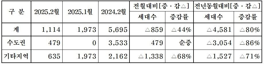 2월 분양계획 현황.(단위:가구)관련 키워드분양중견주택업체대한주택건설협회조용훈 기자 정부, 설 전후 도심 주택 공급 발표…태릉CC급 신규 택지 검토"중단 리스크 한고비 넘겼다"… 가덕도신공항, 착공 시계 재가동관련 기사중견 주택업체, 다음달 11개 사업장서 4488가구 분양한다중견 건설업체 9월 4026가구 분양…"전년 대비 71% 증가"중견주택업체, 8월 전국 4048가구 분양…수도권 공급 129% 급증중견 주택업체 7월 5993가구 분양…"지방에 80% 집중"5월 수도권 중견사 분양 '개점휴업'… 전국 공급 60% 넘게 급감