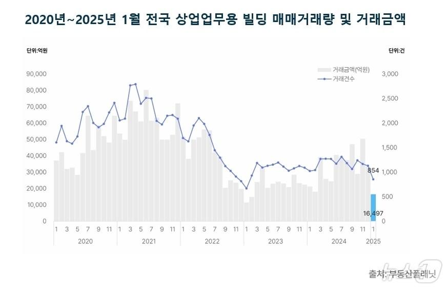전국적 거래 감소세 뚜렷… 전월 대비 거래량 17곳 ↓2020년~2025년 1월 전국 상업업무용 빌딩 매매거래량 및 거래금액(부동산플래닛 제공)관련 키워드부동산플래닛상업업무용빌딩.부동산시장시세부동산윤주현 기자 드파인연희 등 전국 4개 단지 3260가구 공급현대건설, 2026 상반기 '취업완성 아카데미' 기술교육생 모집