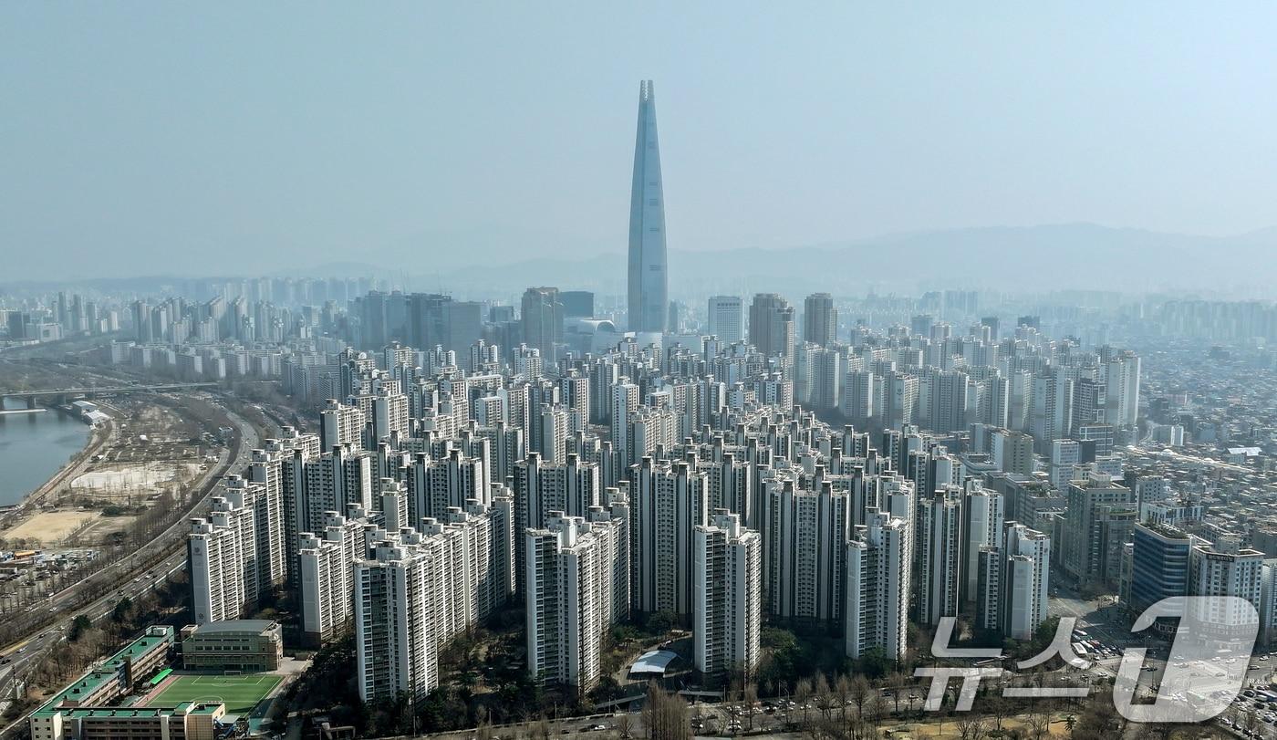 국토교통부와 서울시는 오는 24일부터 9월 30일까지 6개월 동안 강남구, 서초구, 송파구, 용산구 아파트 2천200개 단지, 40만가구를 토지거래허가구역으로 확대 지정한다고 밝혔다. 사진은 23일 서울 송파구 아파트 단지. 2025.3.20/뉴스1 ⓒ News1 김진환 기자