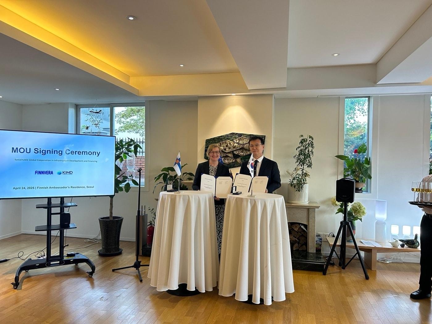 한국해외인프라도시개발지원공사(오른쪽)와 핀란드 정책 금융기관 핀베라(Finnvera) 관계자가 우크라이나 재건 사업 등 협력을 위한 양해각서(MOU)를 체결 후 기념사진을 찍고 있다. /한국해외인프라도시개발지원공사 제공관련 키워드건설부동산카인드협약핀베라한국해외인프라공사kind신현우 기자 지난해 중국인은 구로·금천, 미국인은 강남3구 집합건물 매수올해 건설투자 전년比 2.4%↑…반도체 공장 건설·SOC 예산 확대관련 기사KIND, 다문화가정 청소년위한 '크리스마스 선물 나눔' 봉사활동KIND, 미국 FLNG 사업 첫 진출…"투자 참여 결정"KIND, 호주 뉴사우스웨일스주 에너지·환경부문 협력 논의KIND·한국환경공단, 해외 환경 투자개발 사업 발굴위해 맞손KIND '2025년 해외투자개발 사업 인재 교육' 진행