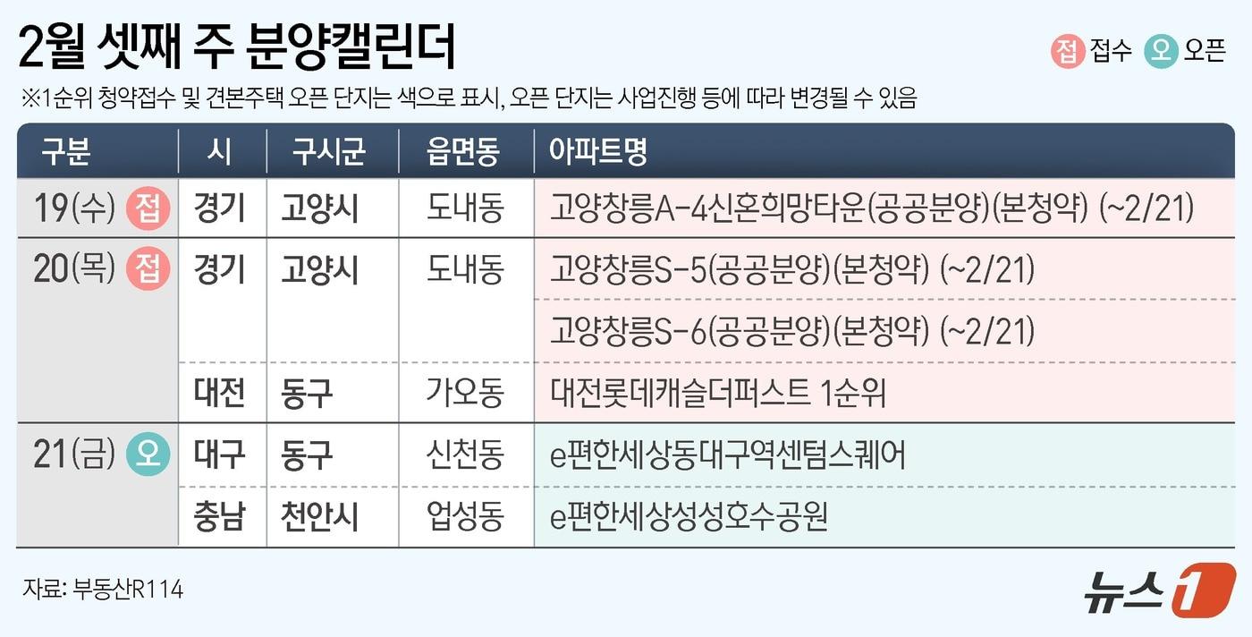 고양 창릉 S-5·S-6 공공 분양…견본주택 2곳 개관ⓒ News1 김지영 디자이너관련 키워드부동산분양캘린더공공분양오현주 기자 지코, 성수동 빌딩 8년 만에 52억 상승…현재 자산가치 110억[르포] 서울 분양 가뭄 속 나온 '드파인 연희'…국평 15억에도 발길관련 기사LH, 다음주 '과천주암C1' 공공분양 나선다…전국 14개 단지 분양'창원센트럴아이파크' 등 전국 10개 단지 분양…1만 2가구 청약 돌입'복정역에피트' 등 전국 9개 단지 분양…2802가구 청약 돌입[분양캘린더] 고령 '다산 월드 메르디앙 센텀하이' 등 4곳 분양[분양캘린더] '천안 아이파크 시티 2단지' 등 10개 단지 분양