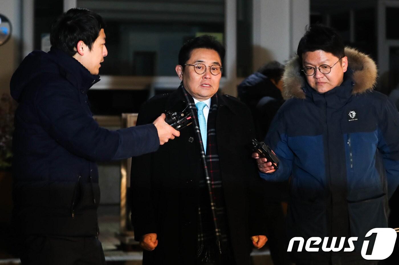 한국e스포츠협회를 통해 이권을 챙기려 한 의혹을 받고 있는 전병헌 전 청와대 정무수석비서관이 13일 오전 구속영장이 기각된 후 경기도 의왕 서울 구치소를 나서며 취재진들의 질문에 답하고 있다. 2017.12.13/뉴스1 ⓒ News1 성동훈 기자