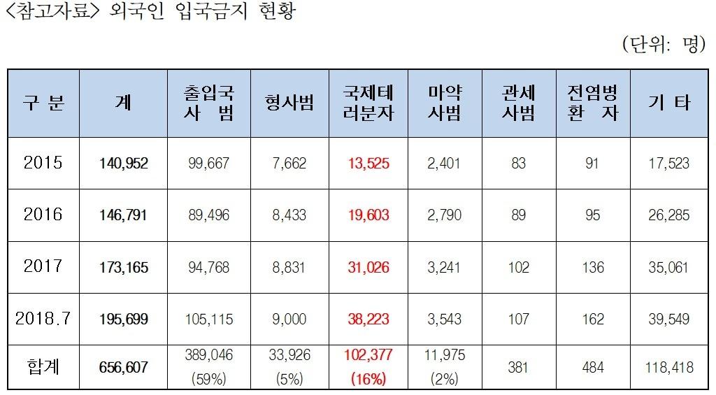 이은재 의원 "더 이상 테러예외국 아냐…방지책 강화해야"최근 4년간 외국인 입국금지 현황ⓒ News1심언기 기자 李정부 새해 과제 '민생경제' 36% 1위…'내란청산' 13% 그쳐TK서도 "李대통령 잘한다" 전국 지지율 59%…국정 성과 1위 "외교·안보"
