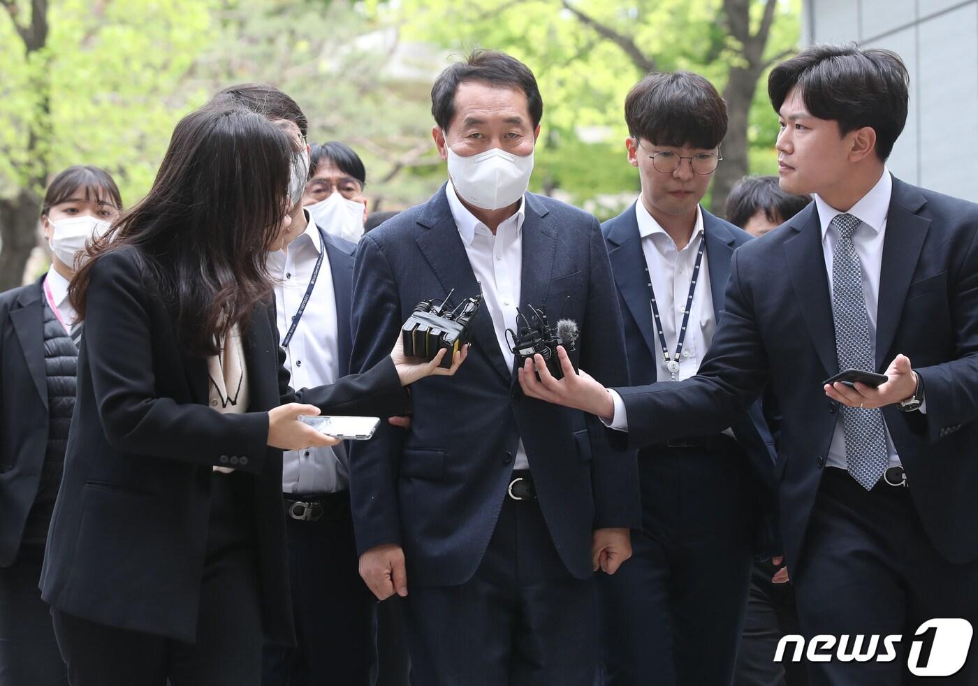 강래구 전 수자원공사 감사위원이 영장실질심사를 받기 위해 서울중앙지법에 들어서고 있다.(공동취재)2023.4.21/뉴스1 ⓒ News1 유승관 기자