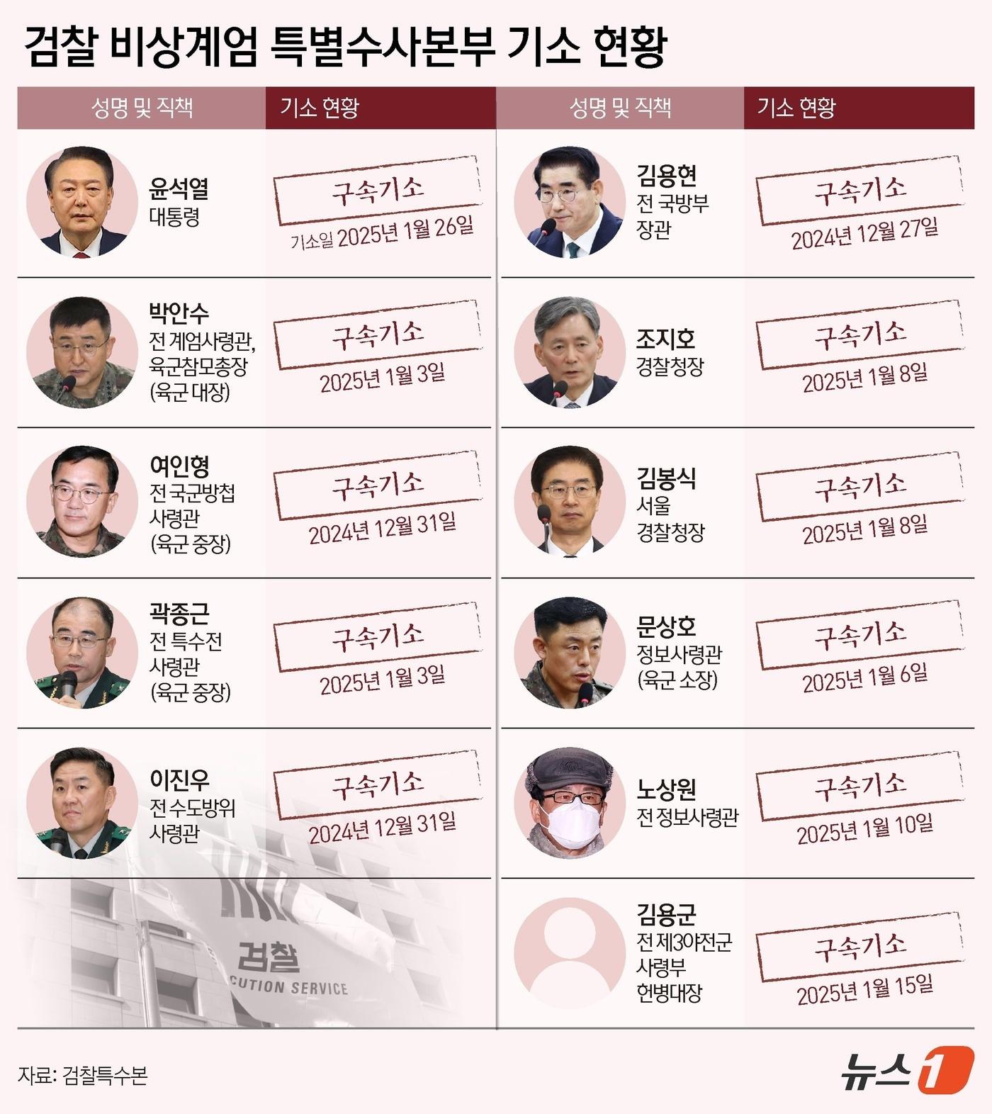 '국회 봉쇄' 조지호·김봉식, '햄버거 회동' 노상원·김용군 첫 재판檢 증인 520명 예상·서증 4만쪽…尹 첫 재판 뒤 재판 윤곽 나올 듯ⓒ News1 김초희 디자이너,김지영 디자이너관련 키워드내란조지호김봉식노상원김용군尹비상계엄선포서한샘 기자 尹 '체포방해' 1심 징역 5년…특검 "일부 무죄 면밀 검토할 것"(종합2보)尹 첫 선고 '계엄 위헌' 우회 지적…내달 내란 재판 가늠자 되나관련 기사[일지] 12·3 계엄 선포부터 尹 '체포 방해' 1심 징역 5년 선고까지특검, '내란 우두머리' 尹에 사형 구형…내달 19일 1심 선고(종합2보)'사형 구형' 尹, 붉어진 얼굴로 89분 최후진술…사과는 없었다(종합)김동연, 尹 사형 구형 "당연한 귀결, 정의 실현돼야"'내란 우두머리' 尹 사형 구형…"권력욕에 민주주의 위협"(종합)