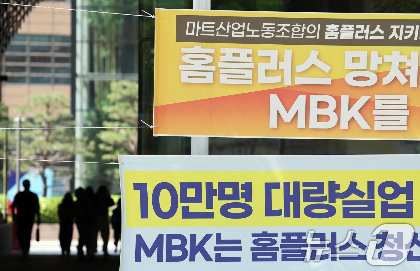검찰이 24일 고려아연 경영권 분쟁 당시 미공개 정보를 이용했다는 의혹 등을 받는 MBK파트너스에 대한 압수수색에 착수했다. 서울남부지검 금융·증권범죄합수부는 이날 오전 자본시장법 위반 혐의로 서울 종로구 MBK 본사를 비롯한 사무실 5곳과 경영진 주거지 7곳 등 총 12곳에 검사와 수사관을 보내 압수수색을 진행 중이다. 사진은 24일 압수수색이 진행 중인 서울 종로구 MBK파트너스 본사 모습. 2025.4.24/뉴스1 ⓒ News1 오대일 기자