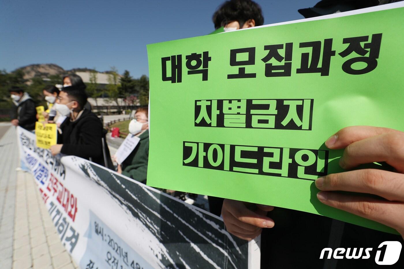 교육부, '장애인 고등교육 지원 종합방안' 마련장애인 특별전형 운영지침 마련…선발인원 확대전국장애인차별철폐연대 등 장애인 인권단체 관계자들이 지난해 4월14일 오전 서울 종로구 청와대 분수대 앞에서 '장애인 입시성적조작, 진주교대와 교육부 규탄 기자회견'을 하고 있다. /뉴스1 ⓒ News1 민경석 기자관련 키워드교육부사회관계장관회의권형진 기자 관훈클럽, 13일 이석연 국민통합위원장 초청 토론회해방 후 첫 '한국여성사' 집필…최숙경 이화여대 교수 별세관련 기사원민경, 공무원 교제폭력에…"예방교육 사전적 접근했어야"(종합)등록금 인상 논의 본격화…사립대 "불가피" vs 학생 "효용 적다"李대통령, 오늘 경제성장전략 국민보고회 주재…50대 세부 과제 공개기획예산처, 새해 첫날 14개 민생사업 3416억 원 집행…역대 최대추계위, 수급 '범위'만 제시…2027 의대정원, 내년 '보정심'서 결론