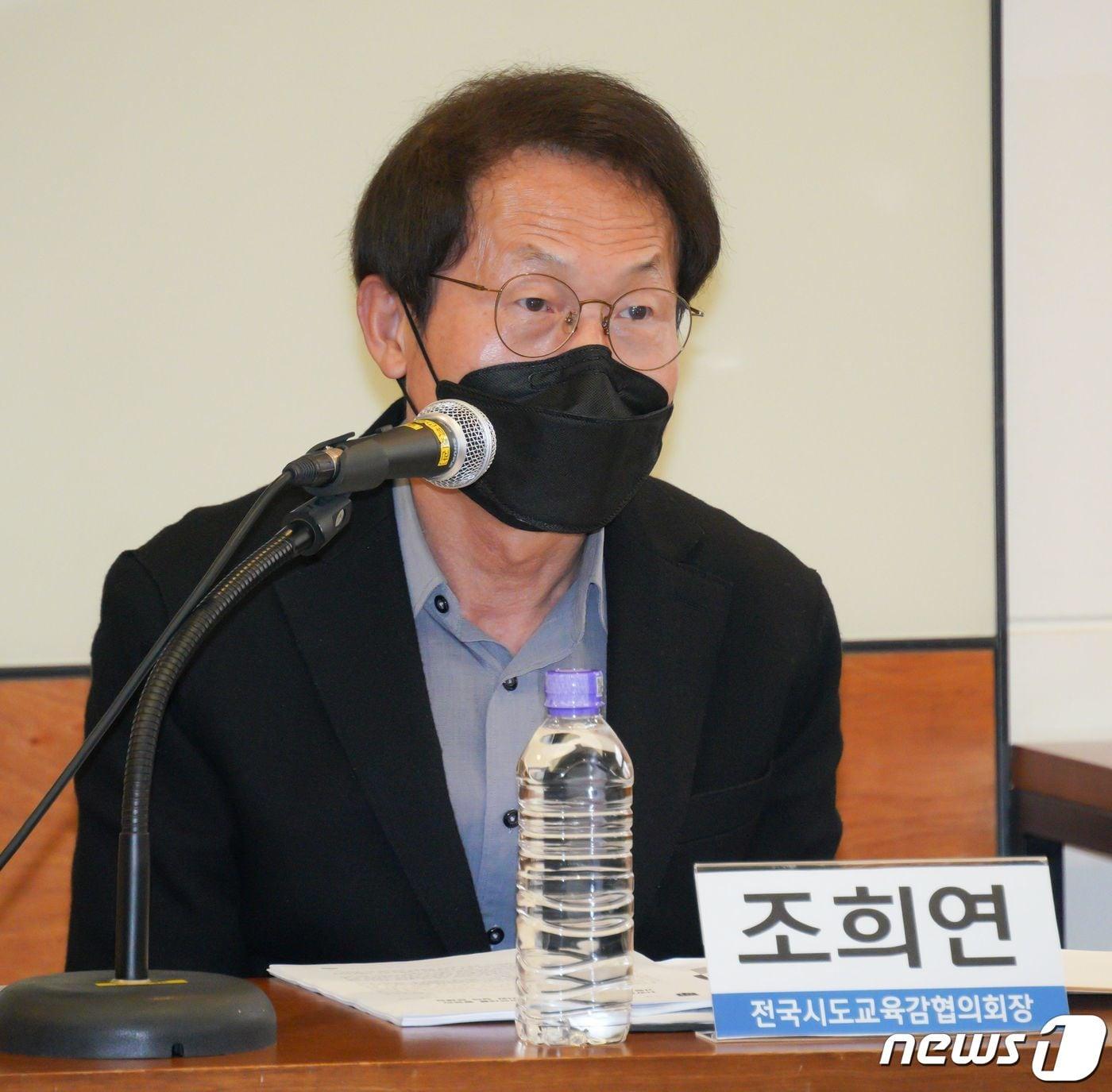 조희연 서울시교육감이 22일 오후 서울 중구 프란치스코교육회관에서 열린 '전국학교비정규직연대회의와 전국시도교육감협의회 공동토론회'에서 '지방교육재정교부금 중 국세 교육세를 활용한 고등‧평생교육특별회계 지원 정책 문제점'에 대해 기조 발표하고 있다. (서울시교육청 제공) 2022.11.22/뉴스1