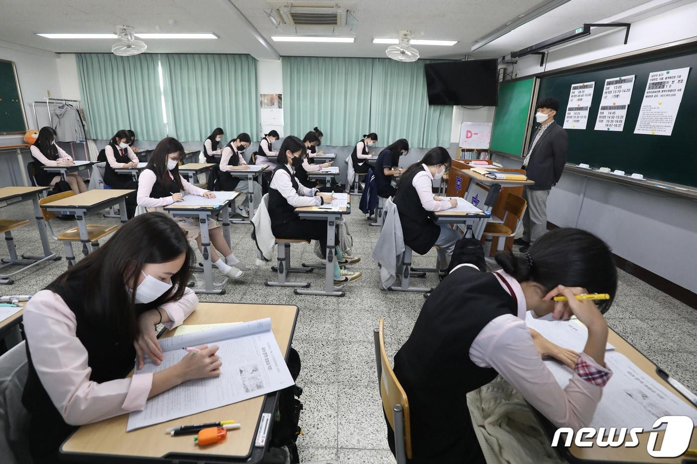 절대평가→내신 변별력 하락…"정시 확대" vs "수시 확대" 팽팽교육부, 상반기 중 개편시안 마련…2024년 2월까지 개편안 확정12일 오전 대구 중구 신명고등학교 고3 교실에서 수험생들이 2023학년도 대학수학능력시험을 앞두고 실시된 마지막 전국연합학력평가를 치르고 있다. 2022.10.12/뉴스1 ⓒ News1 공정식 기자관련 키워드고교학점제수능2028학년도대입제도이호승 기자 경민정 "한동훈 제명, 야비해…尹 사형구형을 韓 사형으로 덮은 것"[팩트앤뷰]DOCTORS PGA, 현대면세점 입점…유통채널 확장 추진한다관련 기사임종식 경북교육감 "고교학점제 시행 맞춰 현장 중심 시스템 구축"고1 치를 2028 대입 한눈에…교육부, 설명회 열고 자료집 배포교원단체 "수능 절대평가 찬성, 서·논술형 도입은 신중"정근식 "2033학년도 내신·수능 절대평가…국교위에 제안"내신 절대평가 전환부터 수능 폐지까지…대입개편안 띄운 정근식