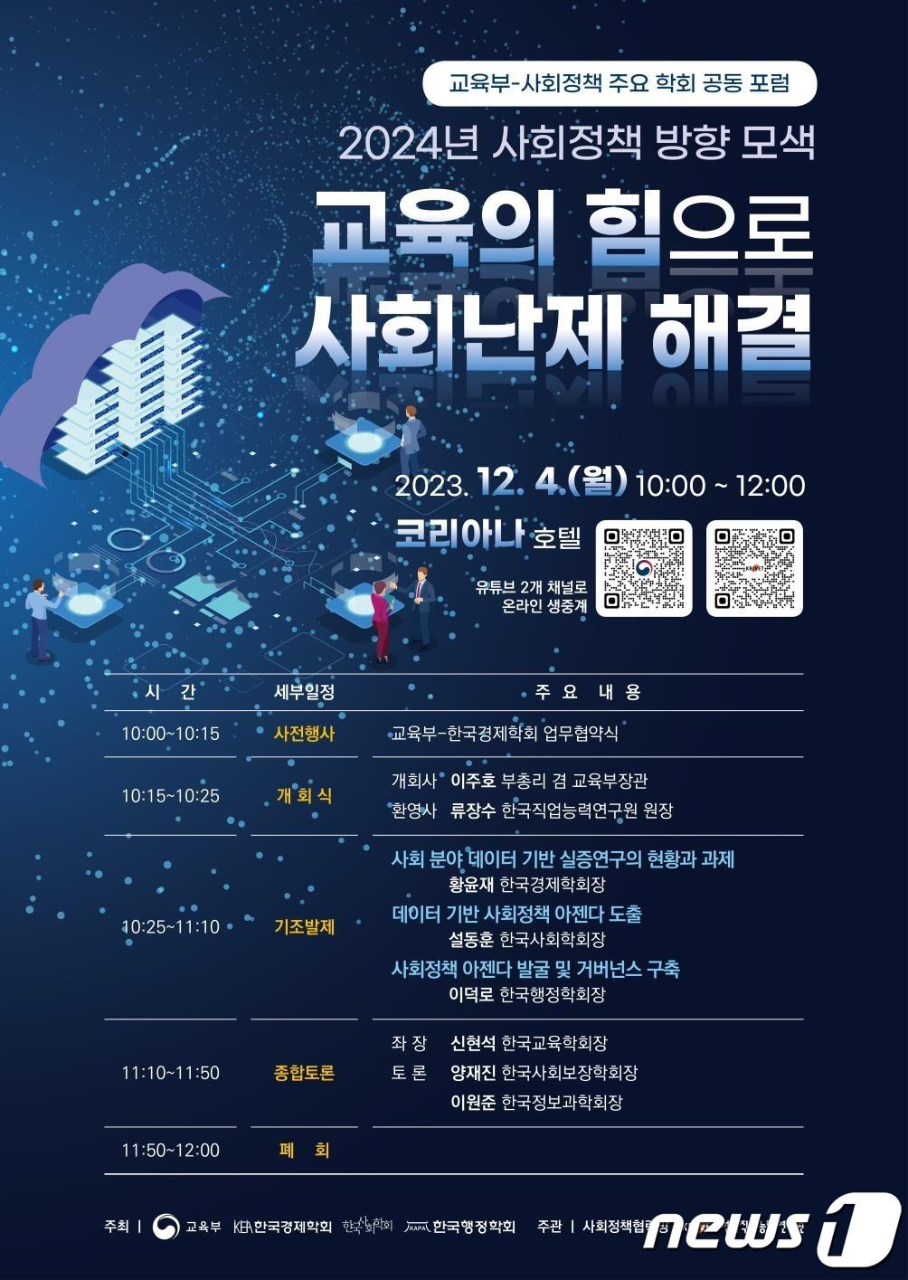 사회문제 수요 바탕으로 데이터 활용 실증연구·정책화(교육부 제공)관련 키워드교육부서한샘 기자 특검, 이상민 징역 15년 구형 "친위 쿠데타 가담"…2월 12일 선고(종합2보)[속보] '언론사 단전·단수 지시' 이상민 前장관 1심 2월 12일 선고관련 기사강남 골목서 여친 폭행…현행범 체포된 남성은 '교육부 사무관'국립순천대, 통합 재투표 실시…세부일정 13일 결정"배움 끊겼다" 제주대 미래융합대학 교수·학생 단식 돌입최교진 장관 취임 후 첫 업무보고 마무리…지역 균형발전 점검(종합)교육부, 소관·유관기관 업무보고 마무리…지역 균형발전 기여 점검