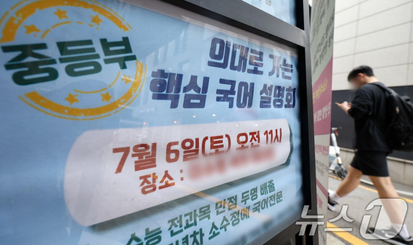 모집인원이 대폭 늘어난 2025학년도 의과대학 입시가 이번주 수시 재외국민 특별전형 모집으로 시작될 예정인 가운데 7일 서울 강남구 대치동 학원가에 의대진학 홍보 문구가 붙어 있다. 교육부와 각 대학 일정을 보면 재외국민·외국인 특별전형(재외국민전형)을 운영하는 12개 대학은 오는 8일부터 원서 접수를 시작한다. 이들은 모두 29명의 의대 신입생을 모집할 계획이다. 2024.7.7/뉴스1 ⓒ News1 이동해 기자
