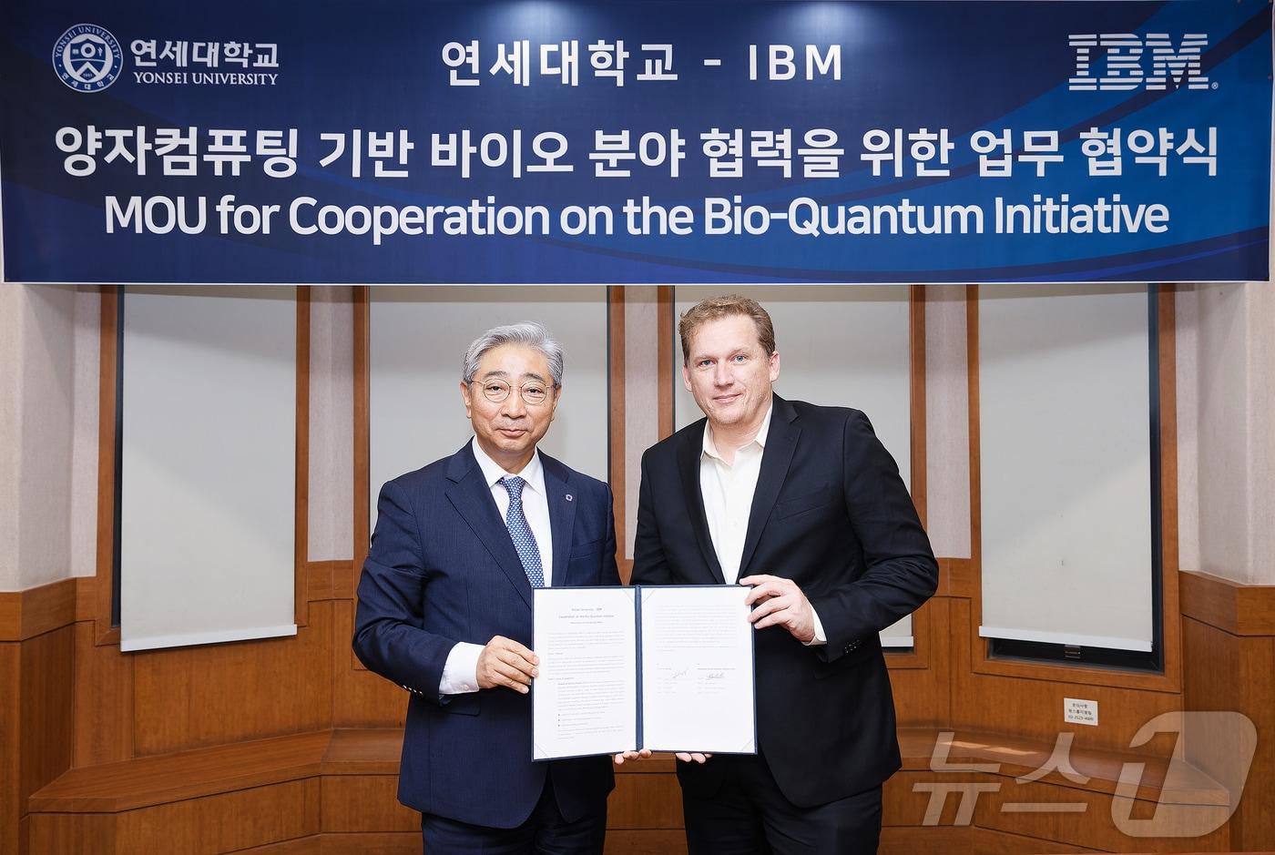 단백질 구조 기반 신약 발견 등 성과 도출 기대 윤동섭 연세대 총장과 제이 감베타(Jay Gambetta) IBM 펠로우 겸 부사장(IBM Quantum). (연세대 제공)관련 키워드뉴스1연세대연세대학교윤동섭관련 기사학폭 가해자, 명문대 못 간다…서울 주요 대학서 99% 탈락 시켜KAIST 총동문회 '자랑스러운 동문상' 수상자 6인 선정미래 양자기술 놀이터…KAIST-MIT '양자정보 겨울학교' 개최장문석 변호사, 민주당 진주시장 출마 선언LG글로벌전략개발원장에 고윤주 LG화학 CSSO 선임