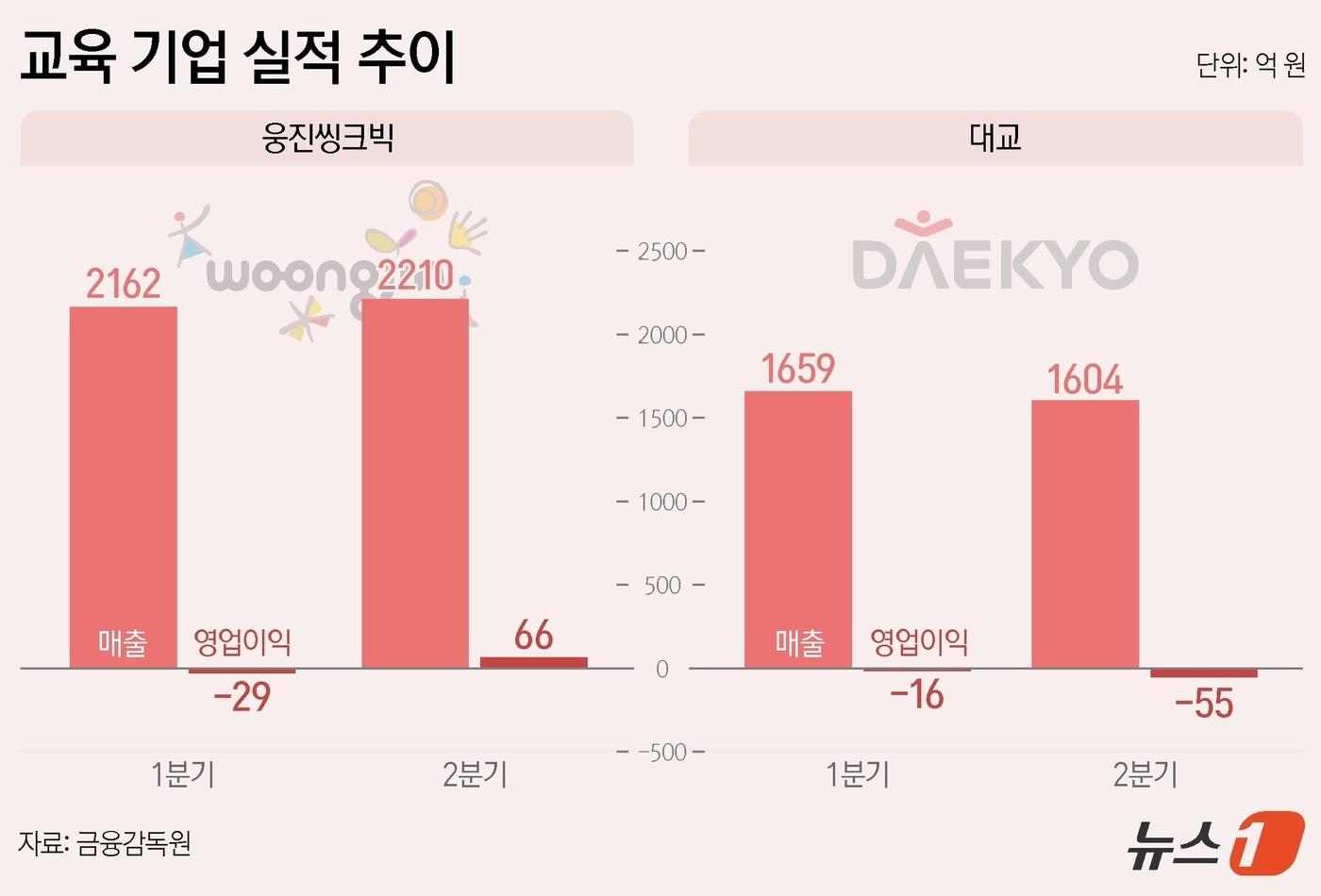 2분기 실적…웅진씽크빅, 영업이익 흑자 전환대교, 상반기 누적 영업적자 71억원으로 증가ⓒ News1 양혜림 디자이너관련 키워드뉴스1웅진웅진씽크빅대교구몬학습빨간펜웅진그룹관련 기사웅진씽크빅, 100억 규모 자사주 매입…"주주가치 제고"웅진씽크빅, 중국인 학부모 대상 교육 설명회 개최웅진, '국내 1위' 상조회사 프리드라이프 8830억원에 인수웅진씽크빅, 신임 대표에 윤승현 한국 MS 부문장 내정이봉주 웅진씽크빅 대표 사임…"후임 인선 진행중"