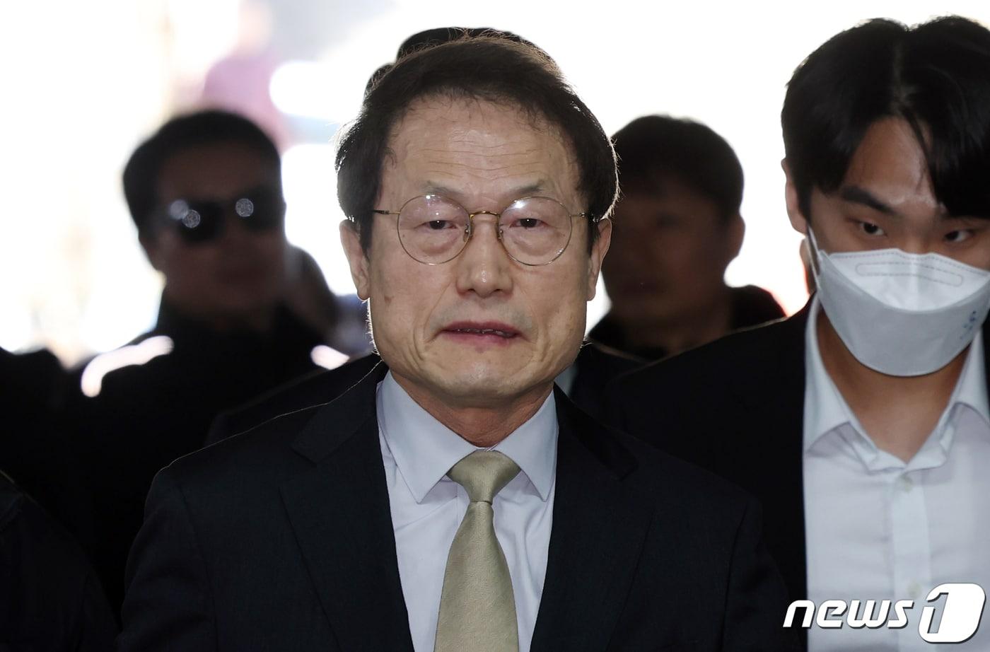조희연 서울시교육감이 1월 18일 서울 서초구 고등법원에서 열린 '해직교사 부당채용' 혐의 2심 선고에 출석하는 모습. /뉴스1 ⓒ News1 김명섭 기자