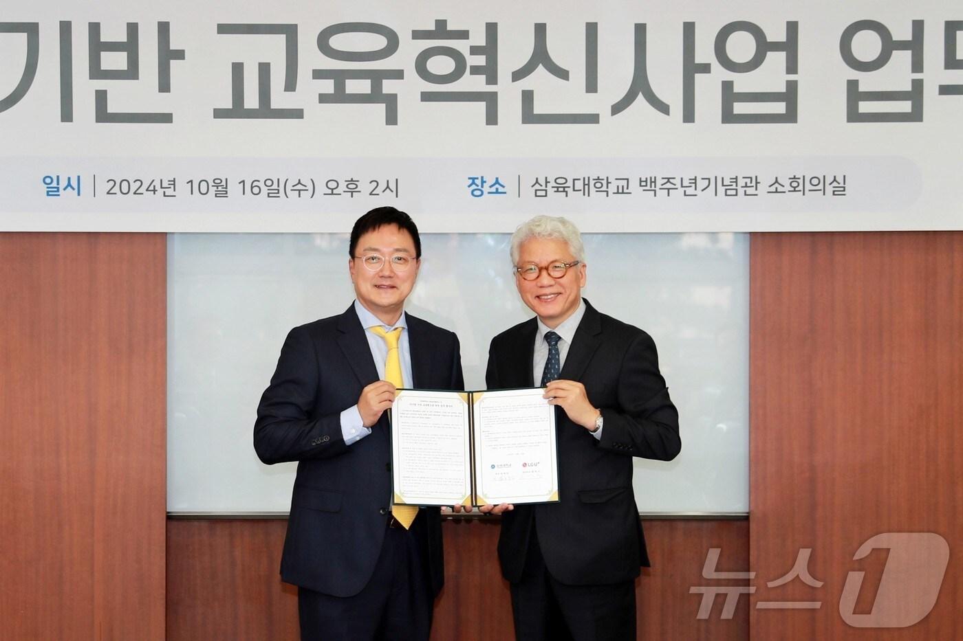 오른쪽부터 삼육대 김용선 부총장과 LG유플러스 임장혁 기업고객그룹장(상무) (삼육대 제공)