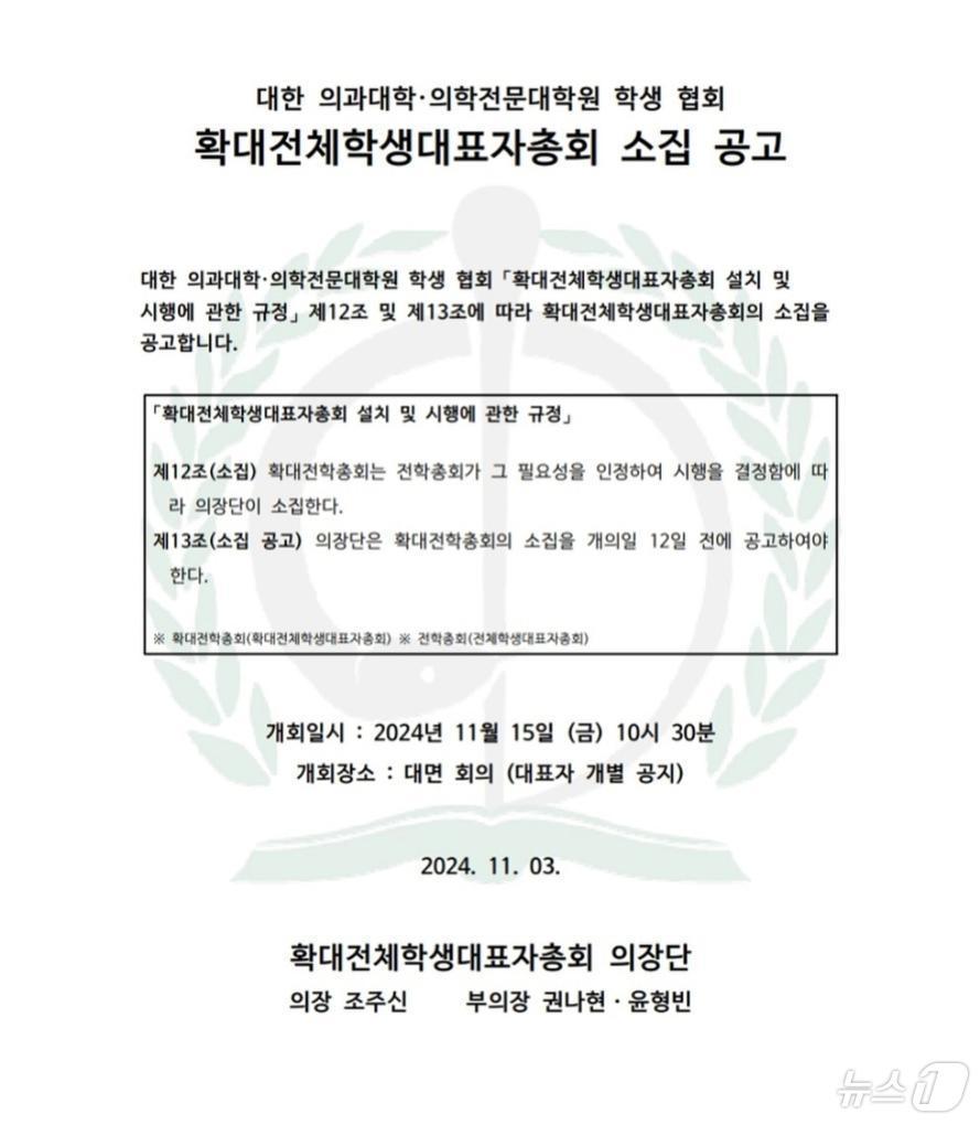 총 참석자 규모 280명 이를 듯…2월 후 처음"적법한 휴학 승인 당연 지사" 강경 입장 고수4일 대한의과대학·의학전문대학원학생협회(의대협) 제공관련 키워드뉴스1의대의대협의대생단체교육부강승지 기자 희귀·난치질환 환우들 모여 '꿈' 노래…AI 창작곡 음원도 공개세브란스, 디지털헬스연구원 출범…"AI 기반 혁신 생태계 조성"관련 기사24·25학번 의대생 "정원 확대보다 교육 환경 점검이 우선"학생 확 늘어난 30개 의대, 7개월간 '교육 가능성' 평가 받는다전북대 의대생들 복귀했지만, 캠퍼스는 '텅'…1~2학년 비대면수업교육부 "AI 교과서, 교육자료 돼도 학교 혼란 없도록 지원"의대생 단체 비대위 해산…수업 복귀 수순, 교육부와는 '소통'
