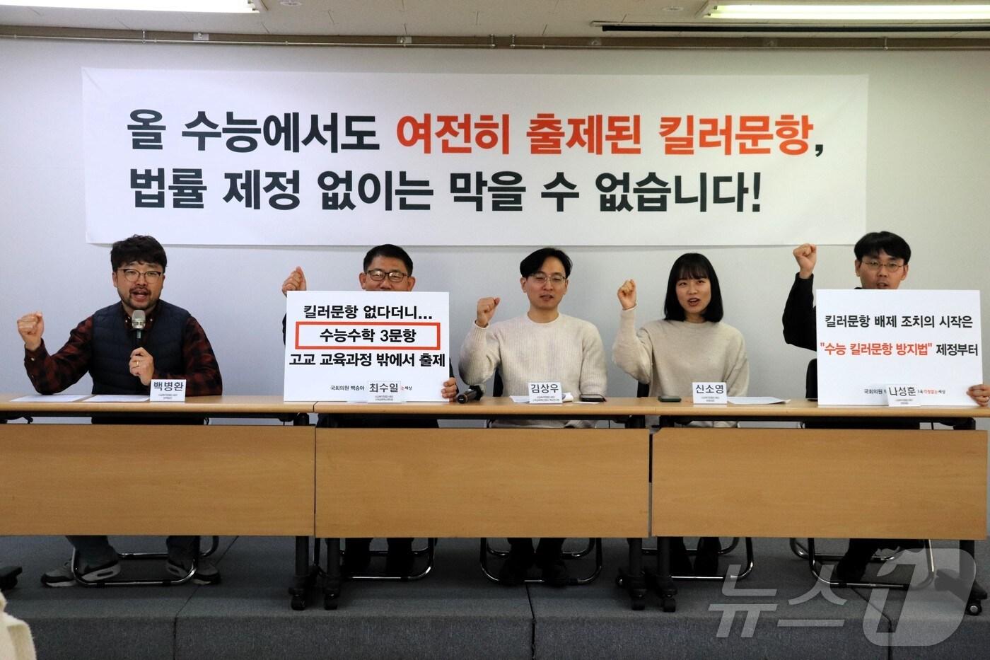 사교육걱정없는세상 "공통 22번, 미적분 29·30번"평가원장 "점검위서 교육과정 확인 후 문항 확정"사교육걱정없는세상 제공오승걸 한국교육과정평가원장이 5일 오후 세종시 정부세종청사 교육부에서 2025학년도 대학수학능력시험 채점 결과를 발표하고 있다. 2024.12.5/뉴스1 ⓒ News1 김기남 기자관련 키워드2025수능사교육걱정없는세상킬러문항한국교육과정평가원평가원권형진 기자 관훈클럽, 13일 이석연 국민통합위원장 초청 토론회해방 후 첫 '한국여성사' 집필…최숙경 이화여대 교수 별세관련 기사"수능 영어 독해지문 40%는 고교 교과서 수준 넘어서"고1 수학 중간고사서 교육과정 외 문제 다수…최대 33% '무관'