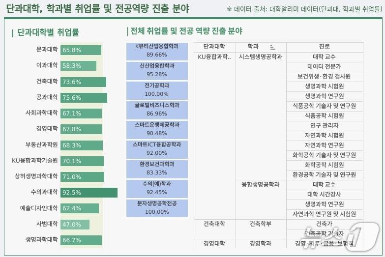 교육성과와 취·창업 정보 등 실시간 제공건국대 교육데이터분석센터 홈페이지에서 확인할 수 있는 '졸업생 취창업 현황' 대시보드의 일부. (건국대 제공)관련 키워드건국대권형진 기자 관훈클럽, 13일 이석연 국민통합위원장 초청 토론회해방 후 첫 '한국여성사' 집필…최숙경 이화여대 교수 별세관련 기사[부고] 엄채현 씨(국립중앙박물관 학예연구사) 모친상고양이수의사회, 2월28일 학술대회…내시경실습·냥학퀴즈왕 진행진주서 4선 지낸 하순봉 전 국회의원 별세주이스라엘대사 박인호·주선양총영사 김성민…특임공관장 인사건국대 반려동물·사회복지 융합과정, 2월7일 입학설명회·세미나 개최