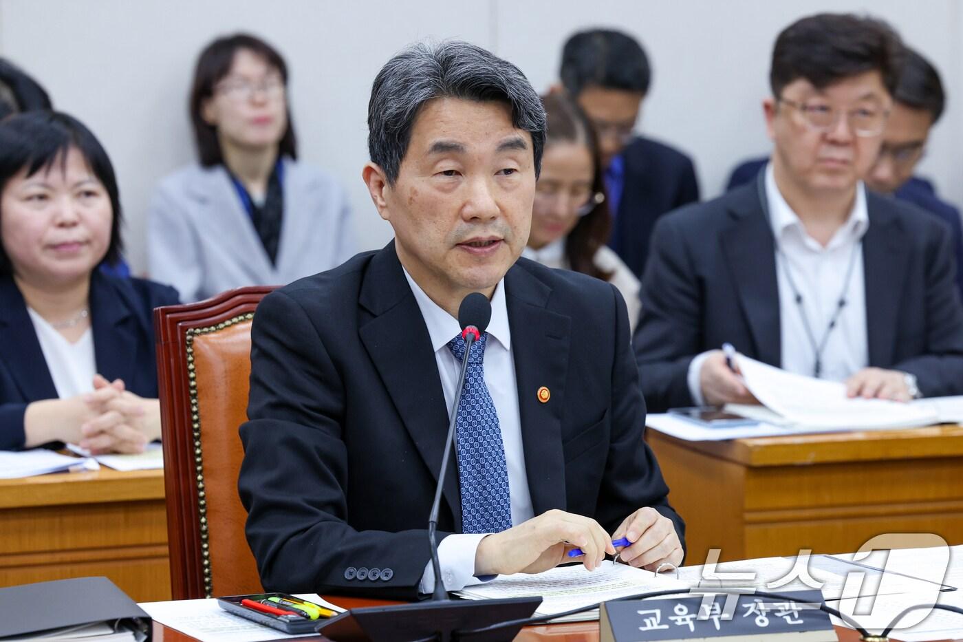 이주호 사회부총리 겸 교육부 장관이 25일 서울 여의도 국회에서 열린 교육위원회 제424회국회(임시회) 제1차 전체회의에 출석해 현안질의에 답하고 있다. 2025.4.25/뉴스1 ⓒ News1 안은나 기자