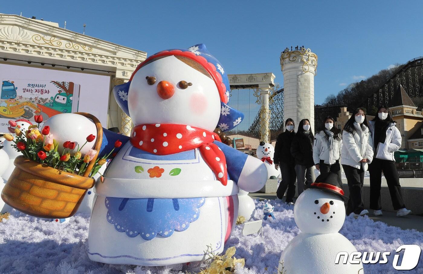 에버랜드가 2023개의 눈사람 세상으로 변신하는 '스노우맨 월드'(Snowman World)를 개장한 1일 오후 경기 용인시 처인구 에버랜드에서 관람객들이 각양각색의 눈사람을 구경하고 있다. 내년 3월1일까지 선보이는 에버랜드 '스노우맨 월드'에서는 각양각색 다양한 모습의 눈사람을 통해 동심과 추억을 소환하고 따뜻한 연말연시를 경험할 수 있다. 2022.12.1/뉴스1 ⓒ News1 김영운 기자