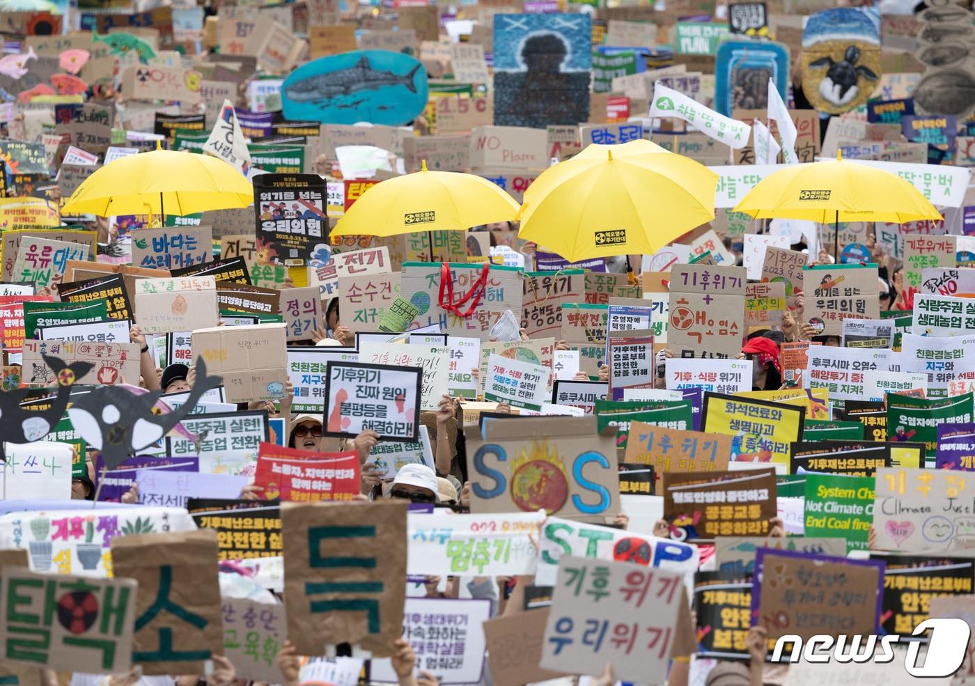 청구인 측, 소송 제기 뒤 기후변화 상황·아동 기회박탈 설명정부 "피해 추상적·불확실…현재 탄소감축 목표도 부담"23일 오후 서울 중구 서울시청역 인근에서 열린 9·23 기후정의행진에서 참가자들이 구호를 외치고 있다. 2023.9.23/뉴스1 ⓒ News1 이재명 기자관련 키워드환경부황덕현 기후환경전문기자 수도권 쓰레기 충청행 논란 속…충주맨의 기후 행보 [황덕현의 기후 한 편]미세먼지 토요일 낮부터 해소…동쪽 '건조'·곳곳 '블랙아이스'(종합)관련 기사수도권 쓰레기 충청행 논란 속…충주맨의 기후 행보 [황덕현의 기후 한 편]충남도 당진발전본부서 초미세먼지 대응 합동 점검이한림 부경대 교수, 기후에너지환경부 장관 표창 받아외교부, 제1차 G20 관계부처 회의 개최…범부처 협력 논의"정부 지원 4년 20조원…'10년 88조원' 통합법안에 훨씬 못미쳐"