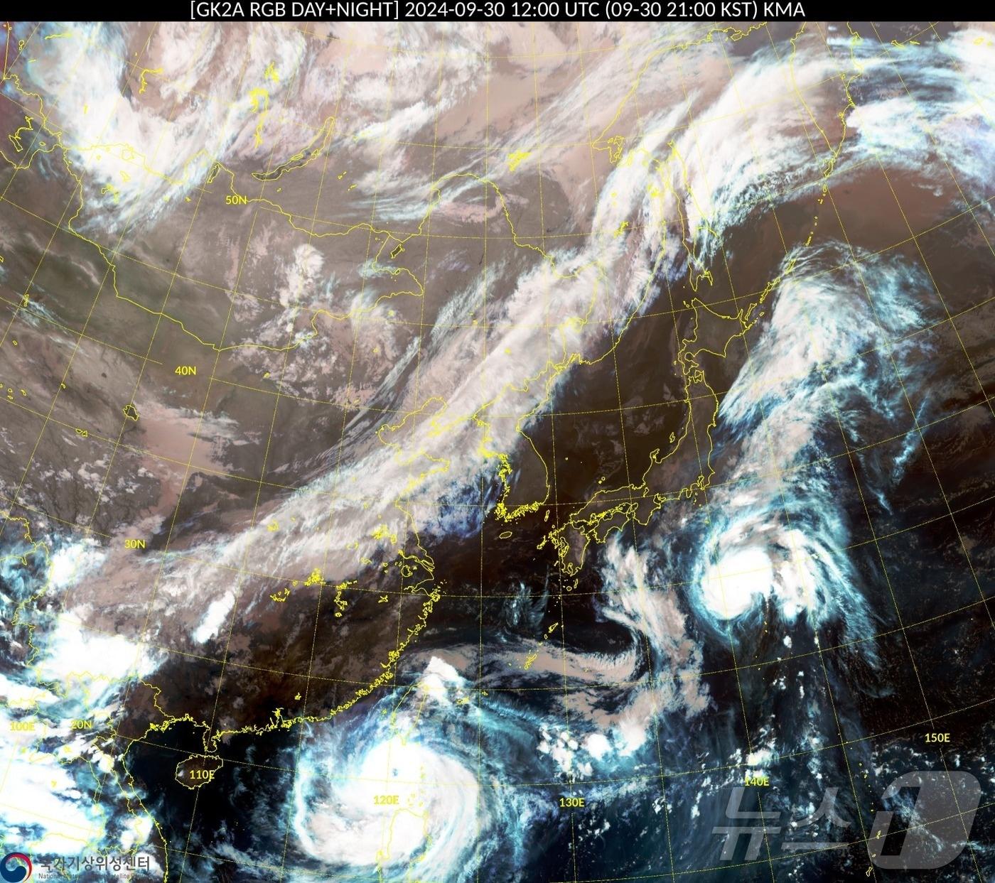 늦더위 부른 북태평양 고기압 확장·수축이 '관건'북상 중 에너지 잃고 소멸 가능성도9월 30일 오후 9시 기준 천리안위성 2A호로 본 동아시아 일기도. 하단에 태풍 끄라톤 모습이 선명하다. ⓒ 뉴스19월 30일 기준, 기상청의 제18호 태풍 끄라톤 예상이동경로(기상청 제공) ⓒ 뉴스1관련 키워드끄라톤태풍황덕현 기후환경전문기자 수도권 쓰레기 충청행 논란 속…충주맨의 기후 행보 [황덕현의 기후 한 편]미세먼지 토요일 낮부터 해소…동쪽 '건조'·곳곳 '블랙아이스'(종합)