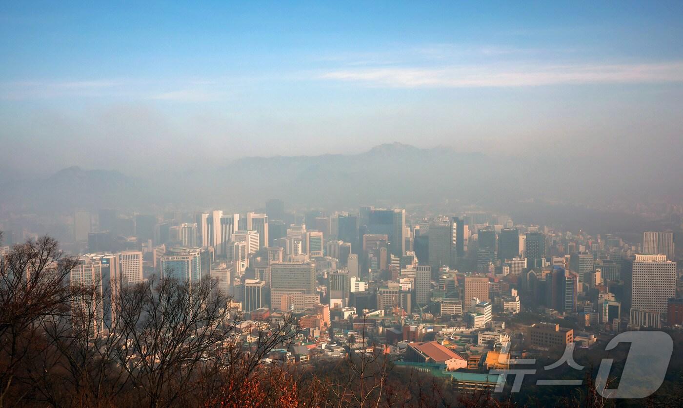 중국발 황사와 미세먼지가 한반도를 덮친 13일 오전 서울 용산구 남산에서 바라본 서울 도심 위로 누런 황사띠가 펼쳐져 있다. 기상청과 국립환경과학원에 따르면 이날 전국의 미세먼지 농도는 내내 ‘나쁨’ 수준을 유지하겠다. 특히 수도권과 충청권은 오전에 미세먼지가 ‘매우 나쁨’ 수준을 보이겠고, 초미세먼지도 ‘나쁨’ 단계까지 오르겠다. 2025.3.13/뉴스1 ⓒ News1 김진환 기자