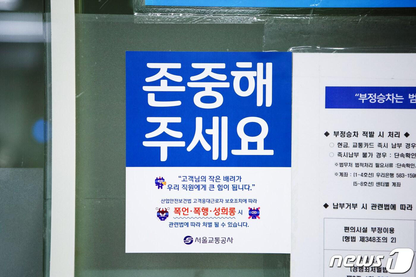 감정노동 피해 예방을 위한 역사 내 홍보 스티커가 부착된 모습.(서울교통공사 제공)ⓒ 뉴스1
