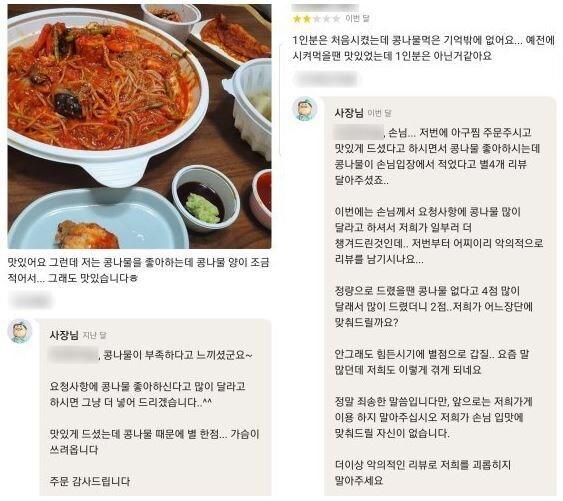 콩나물 더 달라 해 많이 줬더니…"콩나물 먹은 기억만" 별점 테러
