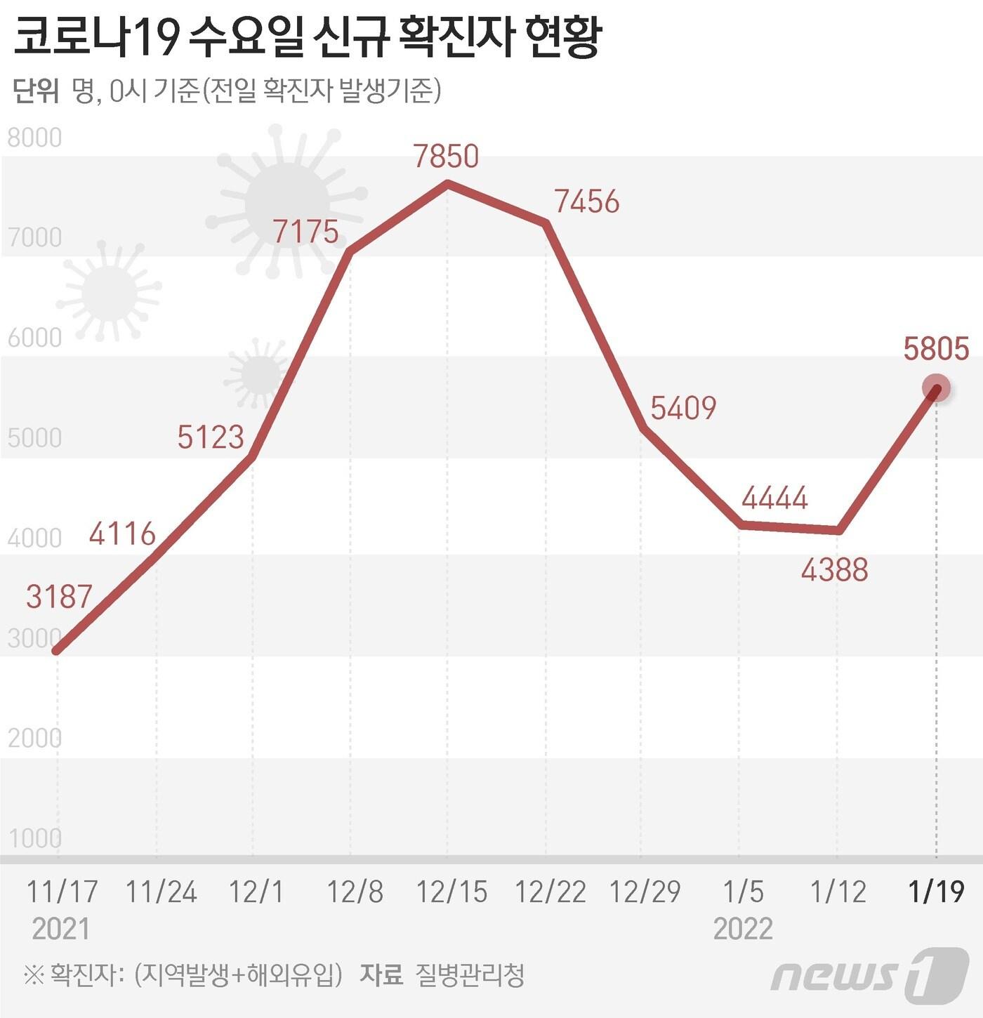 19일 신종코로나바이러스감염증(코로나19) 신규 확진자가 하루 사이 1700명 넘게 늘어나 5805명을 기록했다. ⓒ News1 이지원 디자이너