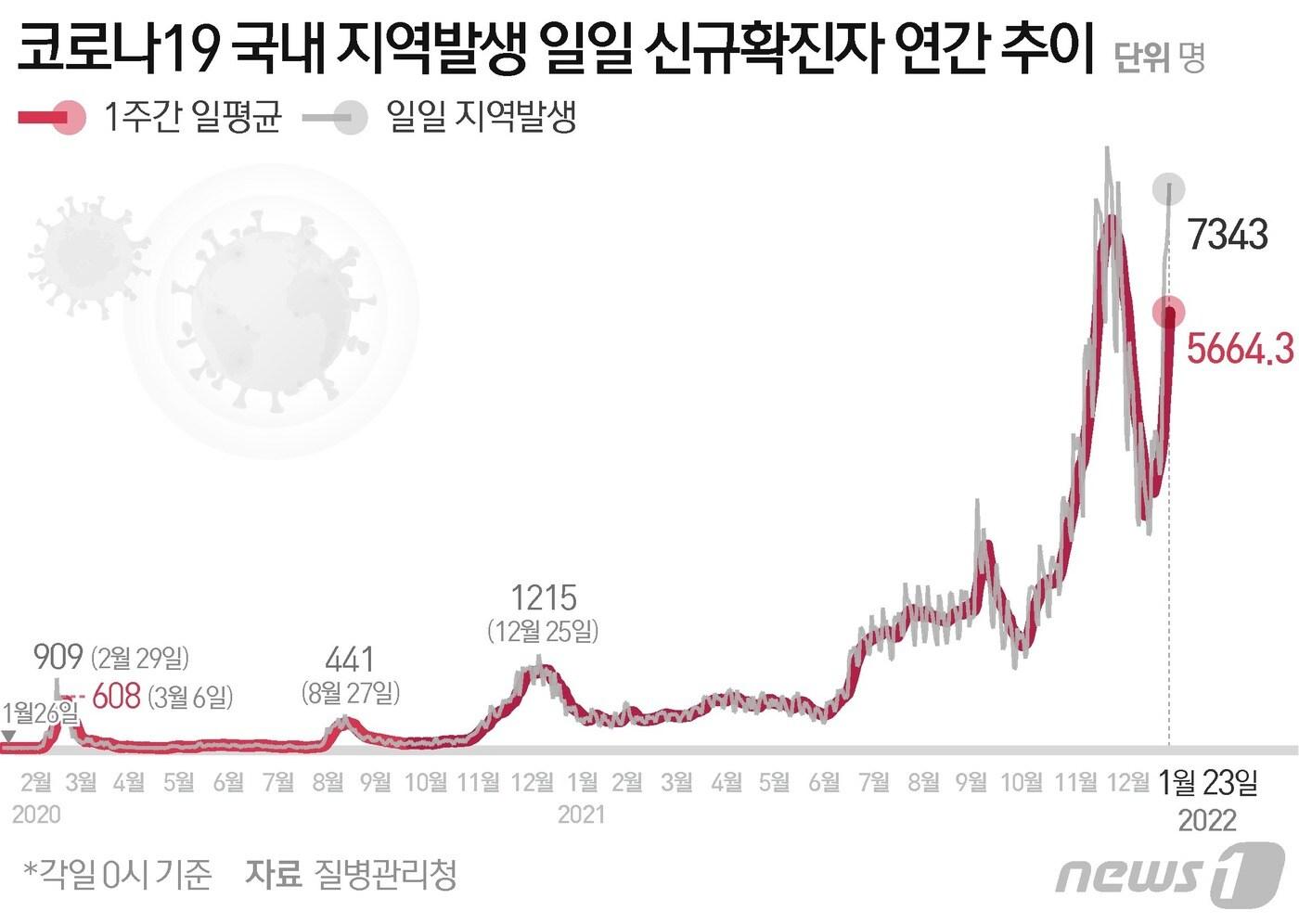 23일 질병관리청 중앙방역대책본부에 따르면 이날 0시 기준 국내 코로나19 누적 확진자는 7630명 증가한 73만3902명으로 나타났다. 신규 확진자 7630명(해외유입 287명 포함)의 신고 지역은 경기 2713명(해외 46명), 서울 1694명(해외 60명), 인천 610명(해외 21명), 대구 458명(해외 10명), 광주 316명(해외 10명), 부산 292명(해외 5명), 경남 226명(해외 13명), 경북 215명(해외 8명), 충남 207명(해외 10명), 전북 140명(해외 4명), 전남 196명(해외 5명), 충북 110명(해외 2명), 대전 159명(해외 8명), 강원 89명(해외 10명), 울산 91명(해외 7명), 제주 27명(해외 4명), 세종 24명(해외1명), 검역 과정 63명이다. ⓒ News1 윤주희 디자이너