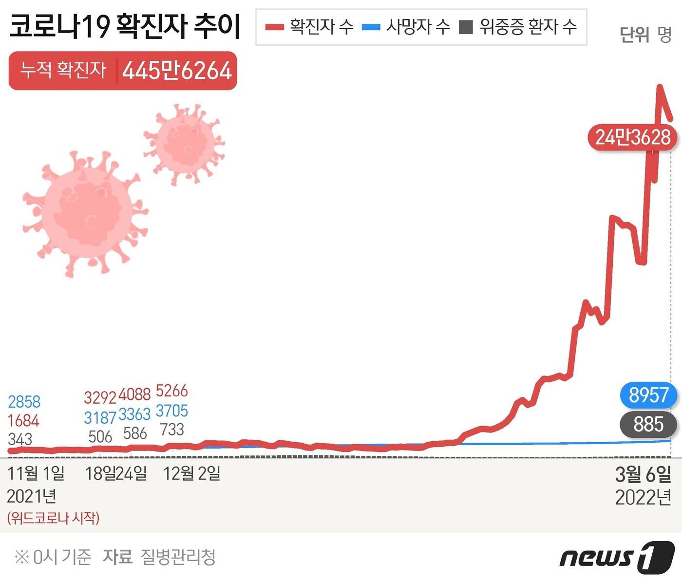 지역발생 24만3540명…수도권 비중 53.8%, 1년만에 최저위중증 환자 이틀째 900명대 육박, 사망 165명…3차 접종률 62%ⓒ News1 이지원 디자이너질병관리청 중앙방역대책본부(방대본)는 6일 0시 기준 신종 코로나바이러스 감염증(코로나19) 신규 확진자가 24만3628명 발생했다고 밝혔다. ⓒ News1 이지원 디자이너관련 키워드코로나19신종코로나코로나이형진 기자 니혼슈코리아, 한일정상회담 개최지역 대표 사케 3종 선보여bhc, '콰삭킹' 출시 1년 앞두고 누적 판매 700만개 돌파권영미 기자 공포의 연쇄살인 코끼리…인도 마을서 9일간 주민 20명 숨져다카이치 日총리 장남, 중의원 출마 결심…내달 조기총선 유력관련 기사2024년 재난 사망·실종 387명…재산피해 1조418억 달해스포츠산업 매출액 '84조7000억원' 역대 최대…종사자 46만명팬데믹 위기 대비 '백신 신속도입 범정부 협의체' 설치된다"코로나19 확산 대응 못한 죄?"…전 中우한시장 당적·공직 박탈다시 화두 오른 '고령자 운전'…"운전면허 반납제 지원 확대해야"