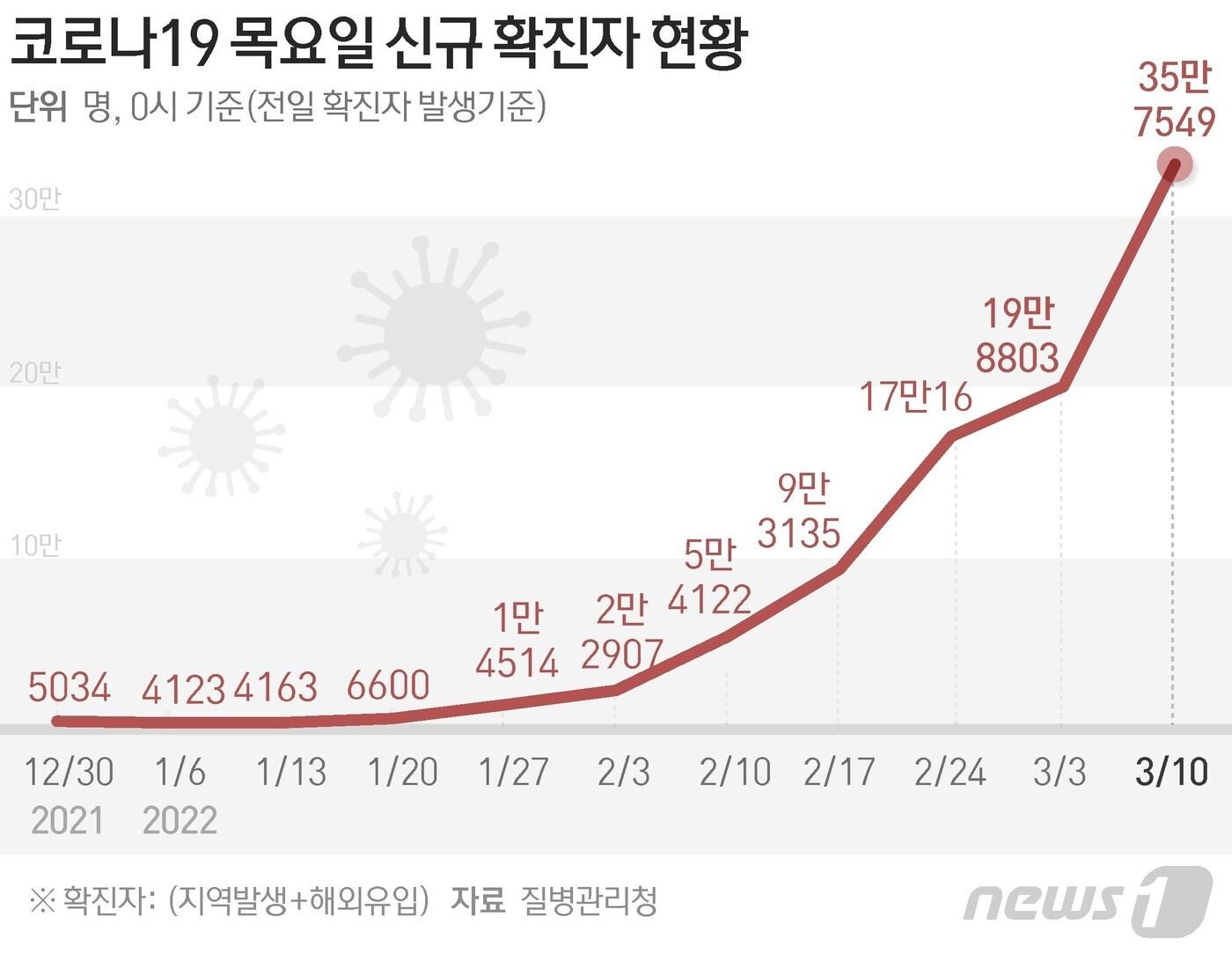 질병관리청 중앙방역대책본부(방대본)는 10일 0시 기준 신종 코로나바이러스 감염증(코로나19) 신규 확진자가 32만7549명 발생했다고 밝혔다. ⓒ News1 김초희 디자이너