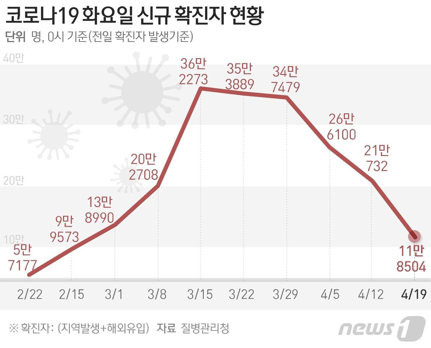 국내발생 11만8484명, 해외유입 20명…누적 1647만1940명누적치명률 0.13%…4차접종 전국민 대비 1%로 집계질병관리청 중앙방역대책본부(방대본)는 19일 0시 기준 신종 코로나바이러스 감염증(코로나19) 신규 확진자가 11만8504명 발생했다고 밝혔다. 사흘 만에 다시 10만명대로 증가했다. ⓒ News1 김초희 디자이너ⓒ News1 김초희 디자이너ⓒ News1 김초희 디자이너관련 키워드코로나19권영미 기자 공포의 연쇄살인 코끼리…인도 마을서 9일간 주민 20명 숨져다카이치 日총리 장남, 중의원 출마 결심…내달 조기총선 유력이형진 기자 니혼슈코리아, 한일정상회담 개최지역 대표 사케 3종 선보여bhc, '콰삭킹' 출시 1년 앞두고 누적 판매 700만개 돌파관련 기사고공농성 336일 만에 땅 디딘 세종호텔 해고 노동자…"복직 투쟁 계속"박용선 경북도의원 "시민 행복·경제 회복 위해 포항시장 출마"원화 약세 배경은 통화량? 한국 GDP 대비 M2 153.8%, 미국의 2배작년 취업자 19.3만명↑…청년 실업률 6.1%·건설 12.5만명↓ '한파'(종합2보)국립보건연구원, 소아 마이코플라스마 폐렴 치료제 효과 비교 임상 개시