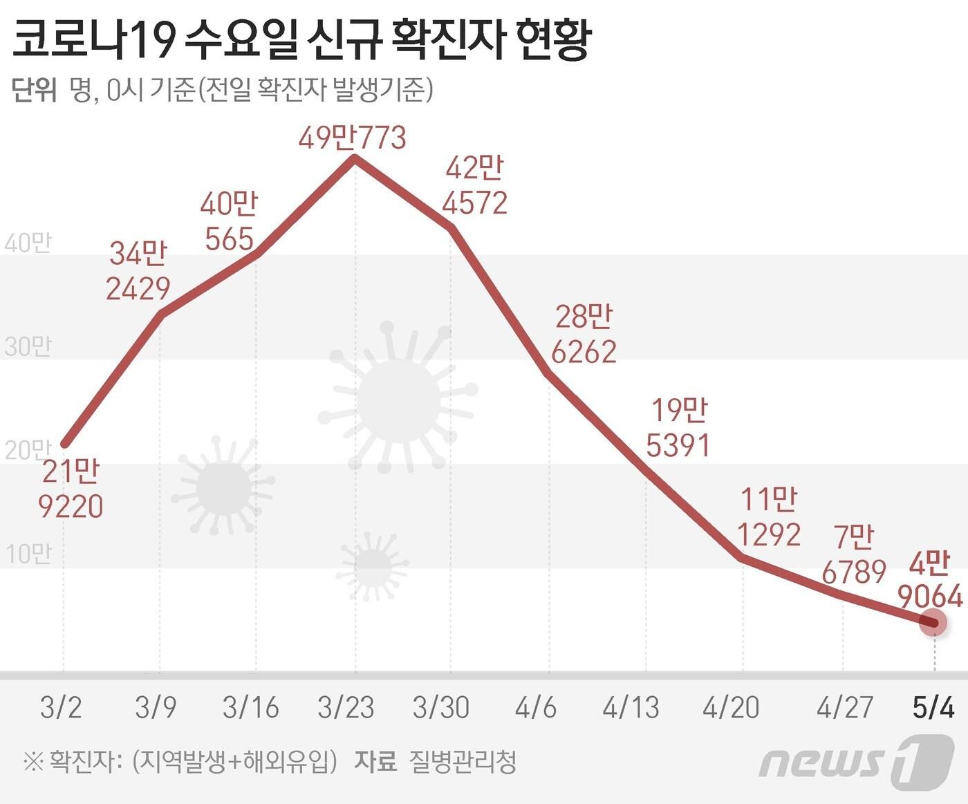 질병관리청 중앙방역대책본부(방대본)는 4일 0시 기준 신종 코로나바이러스 감염증(코로나19) 신규 확진자가 4만9064명 발생했다고 밝혔다. ⓒ News1 김초희 디자이너