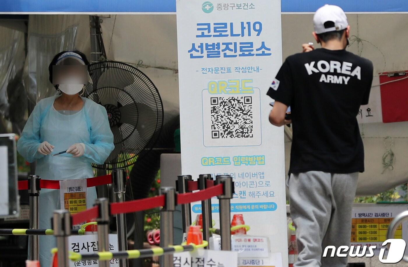 서울 중랑구 보건소에 마련된 신종 코로나바이러스 감염증(코로나19) 선별진료소를 찾은 시민이 PCR 검사를 받기 위해 진료접수를 하고 있다. /뉴스1 ⓒ News1 구윤성 기자