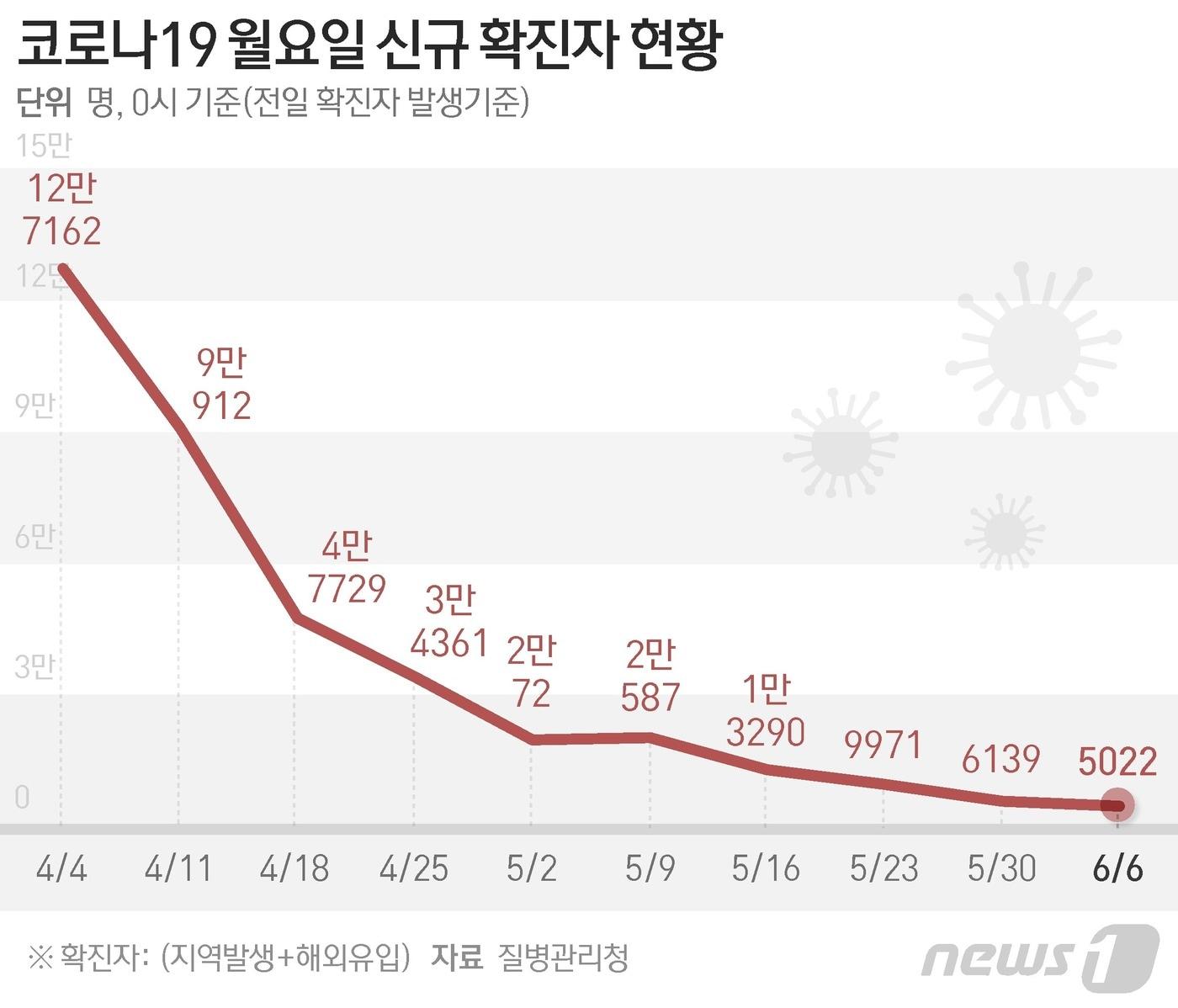 질병관리청 중앙방역대책본부(방대본)는 6일 0시 기준 신종 코로나바이러스 감염증(코로나19) 신규 확진자가 5022명 발생했다고 밝혔다. ⓒ News1 최수아 디자이너