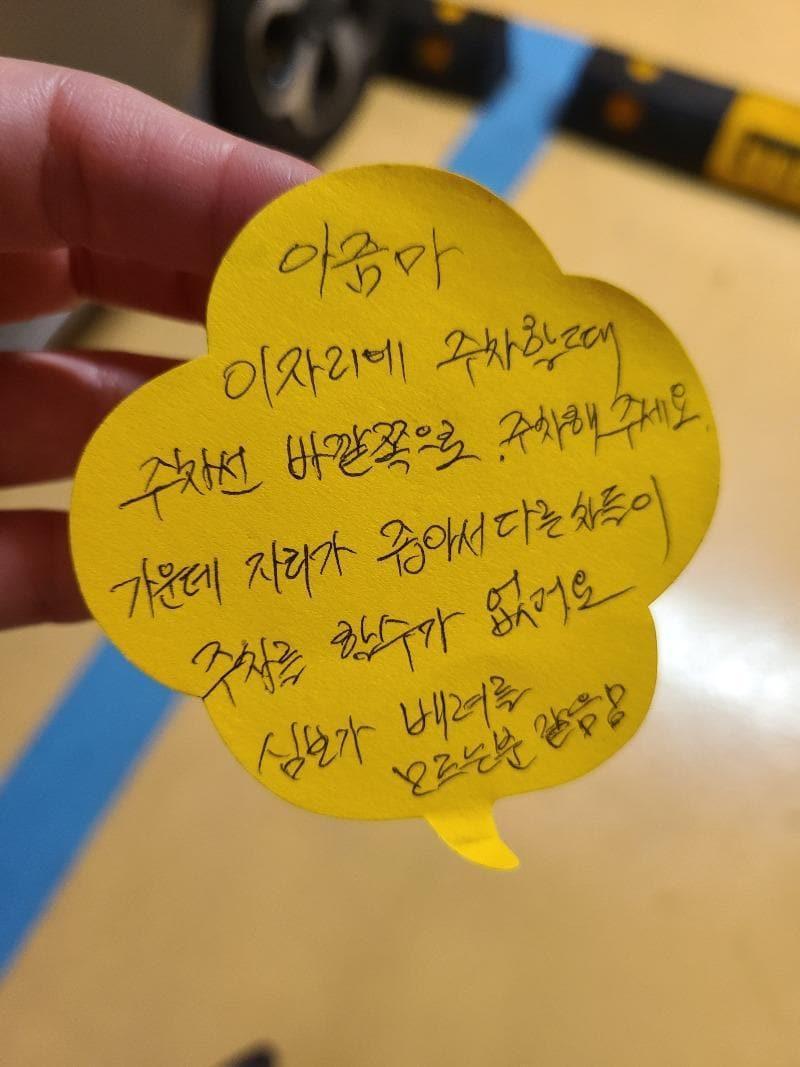 경차 주차구역 선 지켰더니 "아줌마, 심보가 배려를 모른다" 황당 쪽지