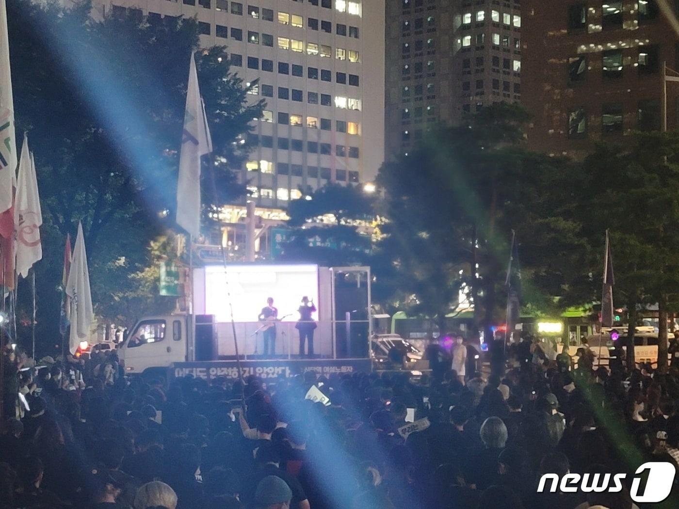 신당동 스토킹 피해자 추모…검은 색 옷 여성 500여명 참가민주노총과 한국노총, 한국여성단체연합, 한국여성노동자회, 한국여성민우회, 전국여성노동조합 등 여성노동연대회의는 22일 오후 7시 서울 종로구 보신각 앞에서 신당역 스토킹 살인 피해자를 추모하는 집회를 열었다.