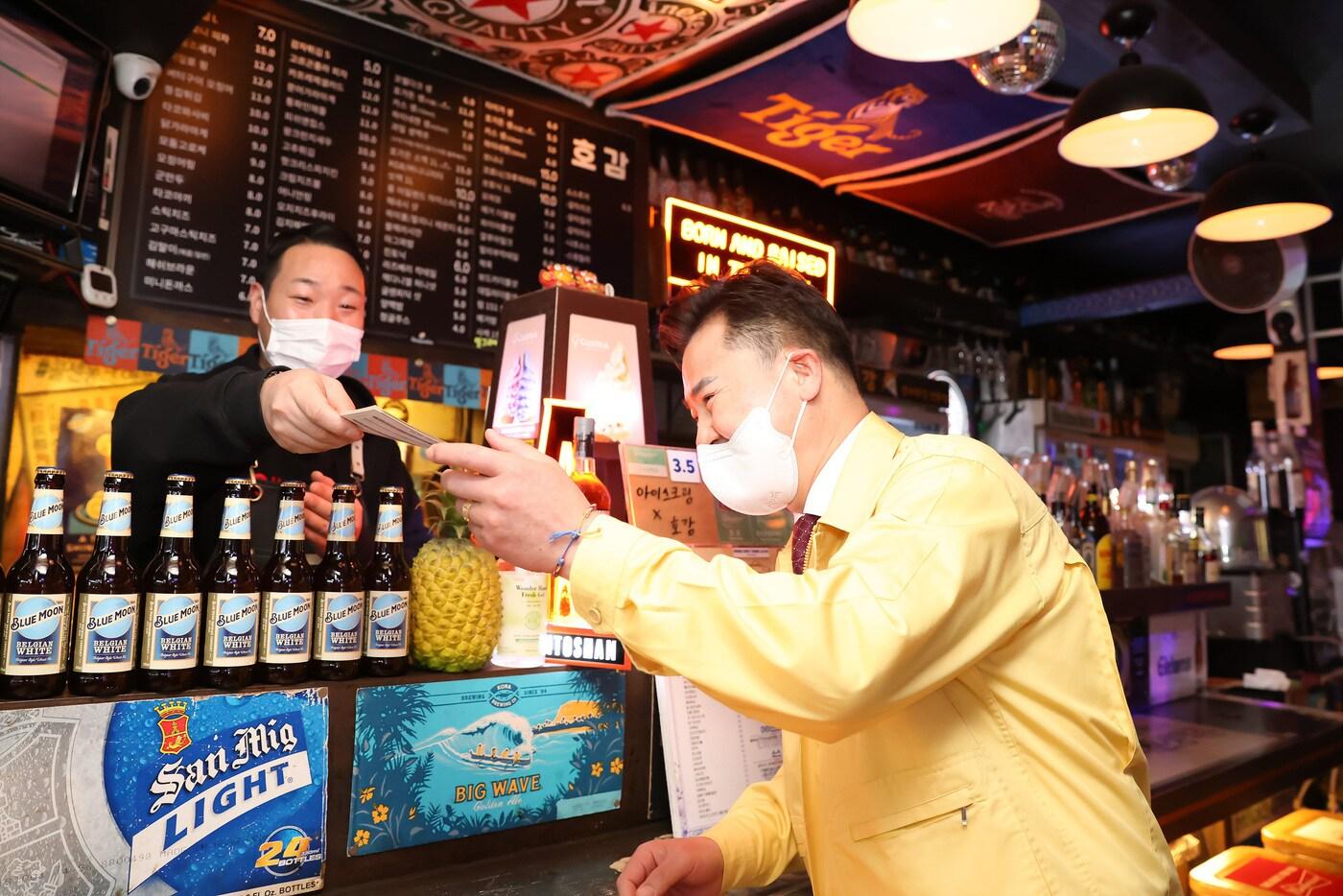 15일 오언석 도봉구청장이 지하철역 인근 주류 판매업소 등을 찾아 수능을 전후한 청소년 주류 판매 금지 등을 사전 안내하고 있다. (도봉구 제공)
