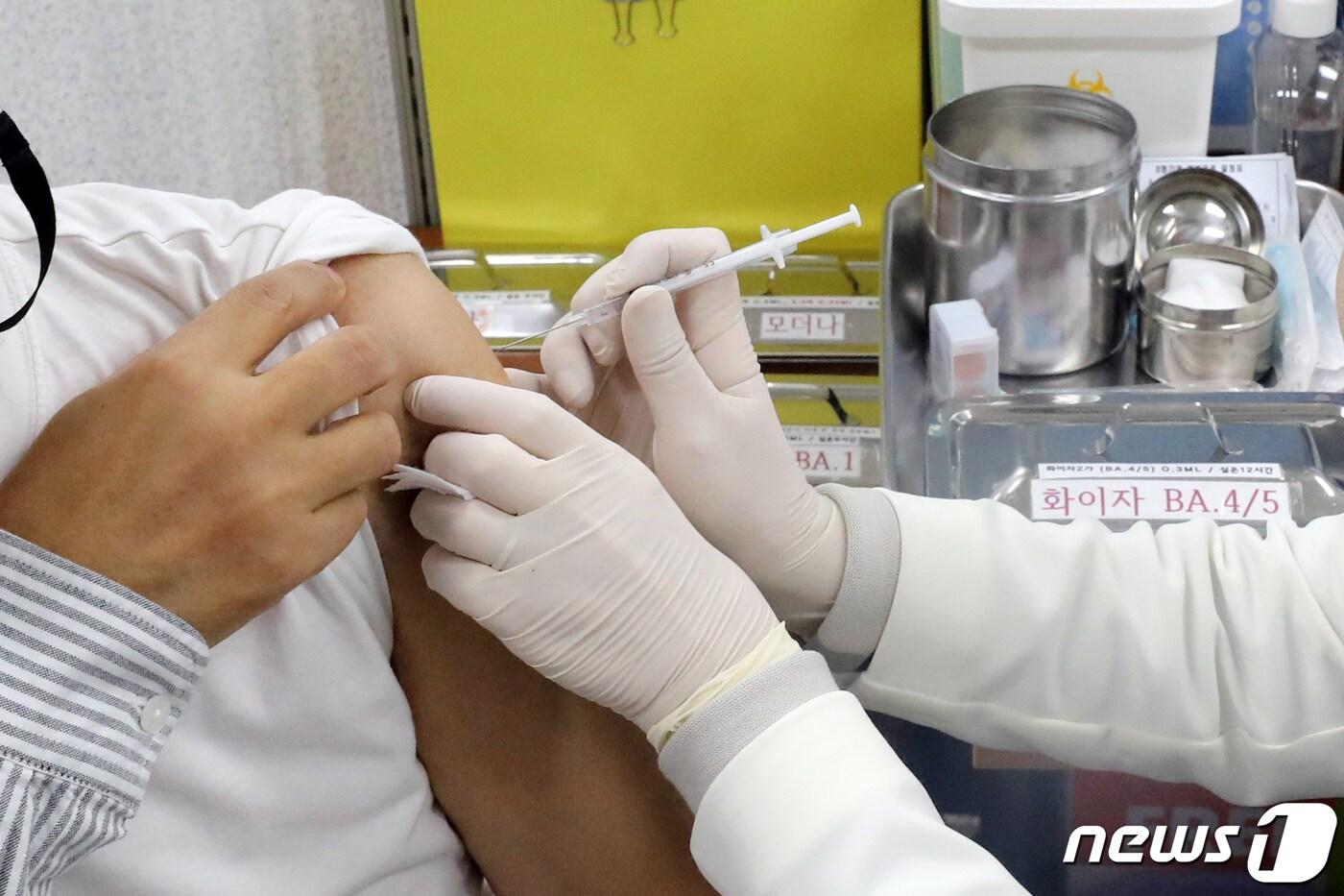 서울 종로구보건소에서 한 시민이 신종 코로나바이러스 감염증(코로나19) 오미크론 BA.4/5 변이 기반 화이자 2차 개량백신(2가백신) 접종을 받고 있다./뉴스1 ⓒ News1 황기선 기자