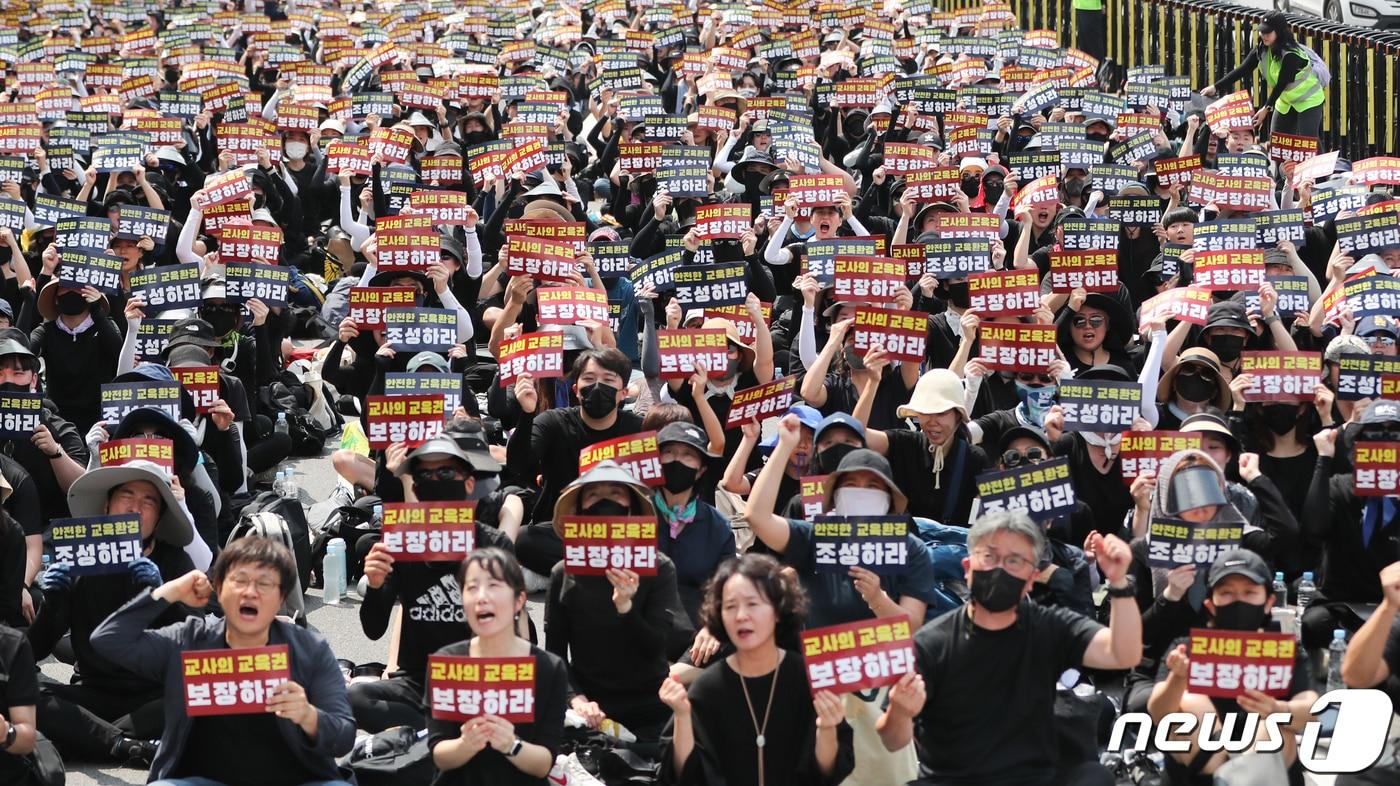 교총, 교권침해 1만1627건 접수…학부모가 학생 2.5배학생 교권침해는 47%가 업무·수업방해…폭언·욕설 29%29일 서울 종로구 정부서울청사 인근 도로에서 열린 서이초 교사 추모식 및 교사생존권을 위한 집회에서 참가자들이 교사 처우 개선 등을 촉구하고 있다. 2023.7.29/뉴스1 ⓒ News1 허경 기자한국교원단체총연합회가 접수한 교권침해 사례 통계.관련 키워드교총교권교권침해교남해인 기자 구치소서 불법 성기 확대 시술 강제로 당한 수용자 지원한 검사尹 '체포방해' 1심 징역 5년…특검 "일부 무죄 면밀 검토할 것"(종합2보)관련 기사교육계, 새해 교권·공동체 회복 다짐…"교육활동 침해 대응"(종합)교총 회장 "선생님이 살아야 학교가 산다…울타리 될 것"강주호 교총 회장 "교원의 법적 경호팀·정책 대변인 될 것"교총 회장 "악성민원 맞고소로 교권 보호…국가, 소송 대리해야""보수적 교총은 옛말…진영 논리보다 교사 보호막 구축할 것"